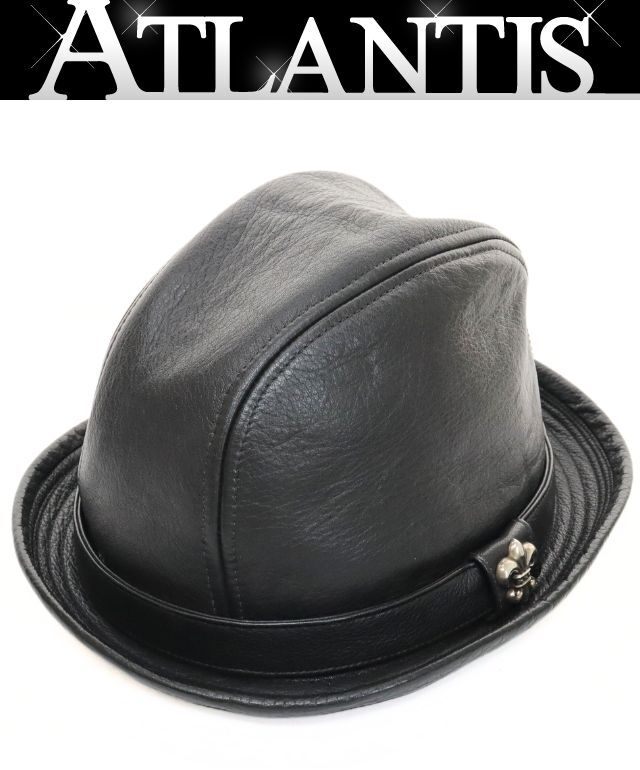 商品名 | CHROME HEARTS 銀座店 クロムハーツ BSフレア ガンスリンガー レザー フェドラハット メンズ SV925 size:L 黒 |