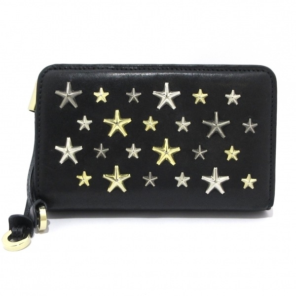 ジミーチュウ JIMMY CHOO 2つ折り財布 ミーラ (MEERA) レザー 黒 スター/スタッズ/L字ファスナー 財布