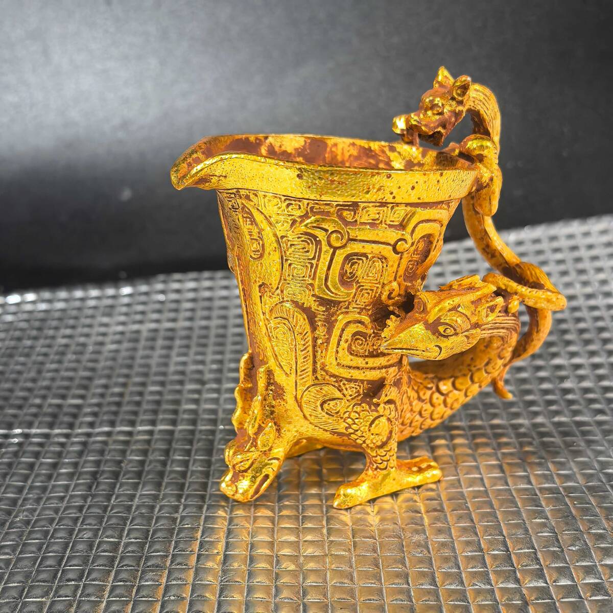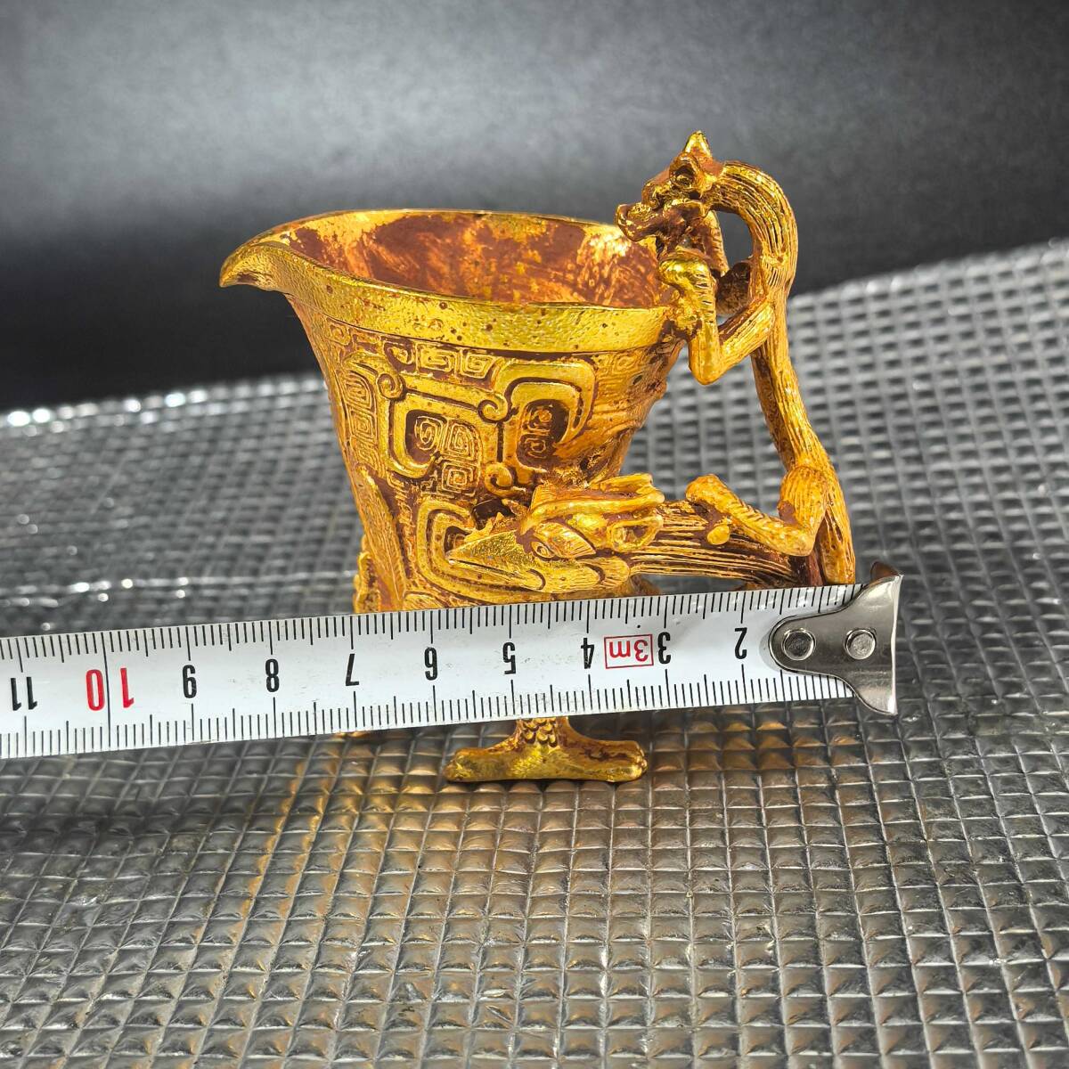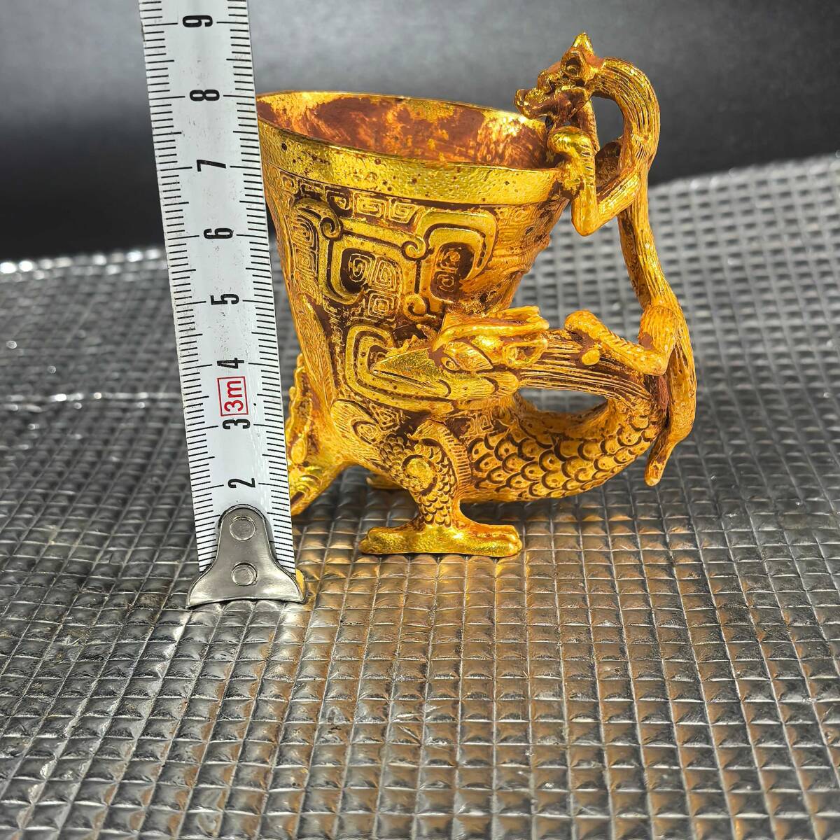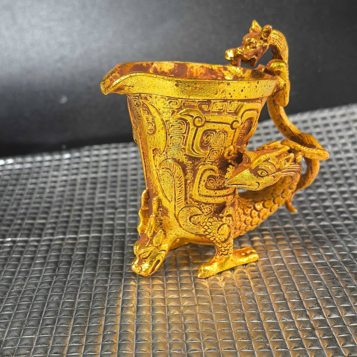 早期收集 銅流金彫 瑞獣 酒杯 酒樽 文案 置物 古擺件 時代物 古董品 骨董 收集 旧家蔵出し 唐物 中国古玩 古美術品