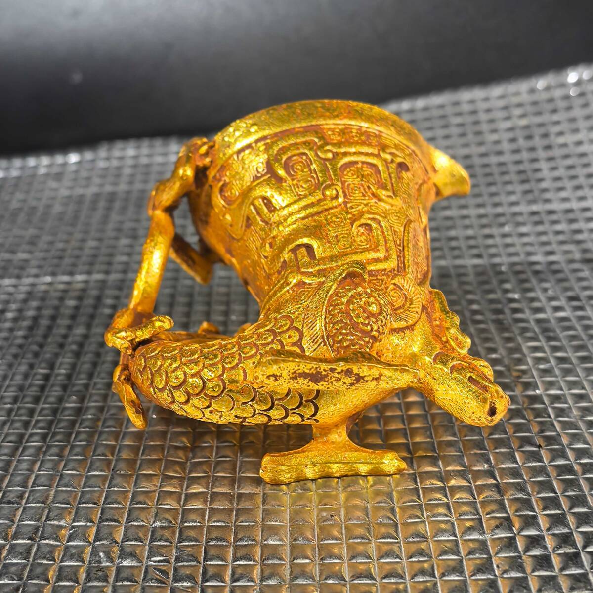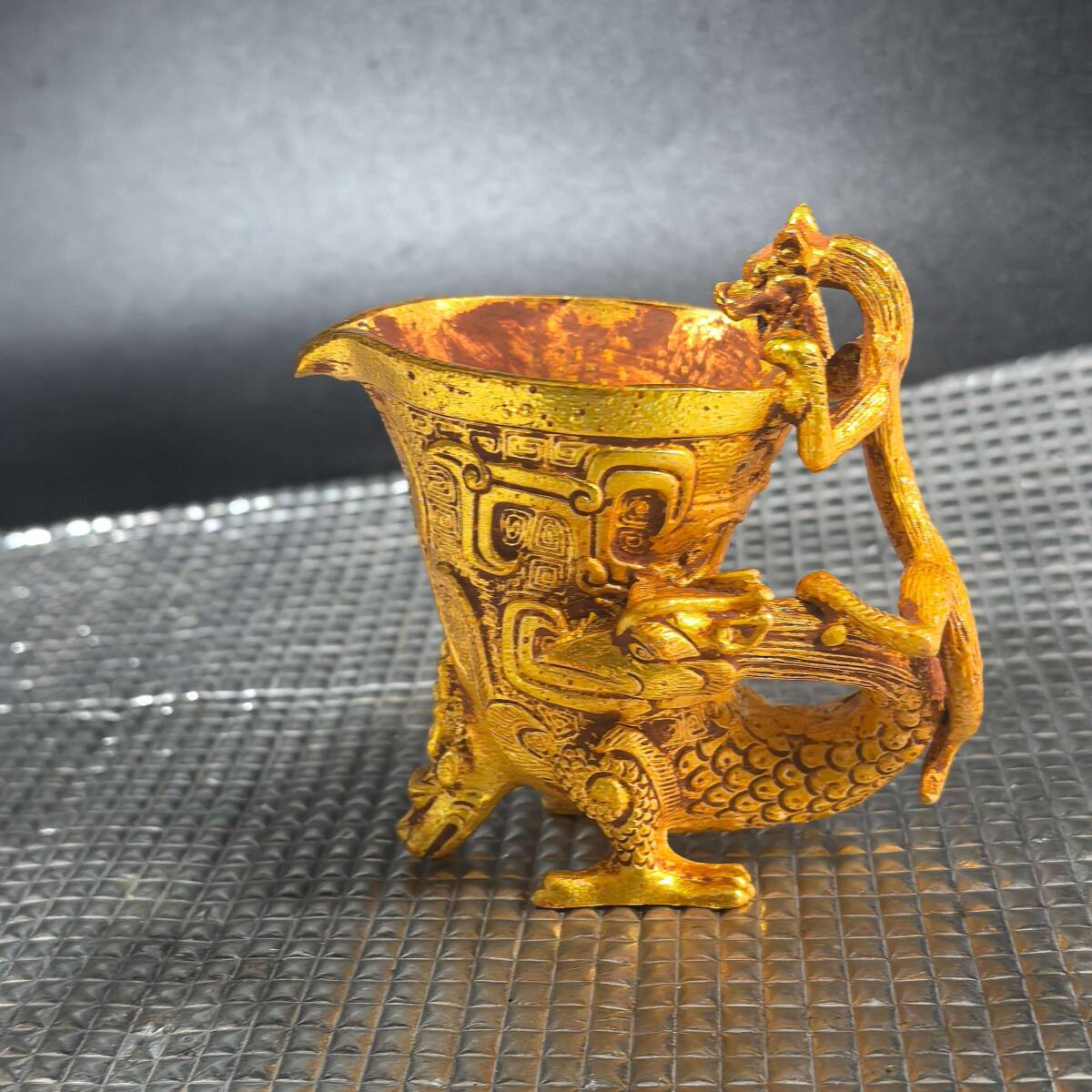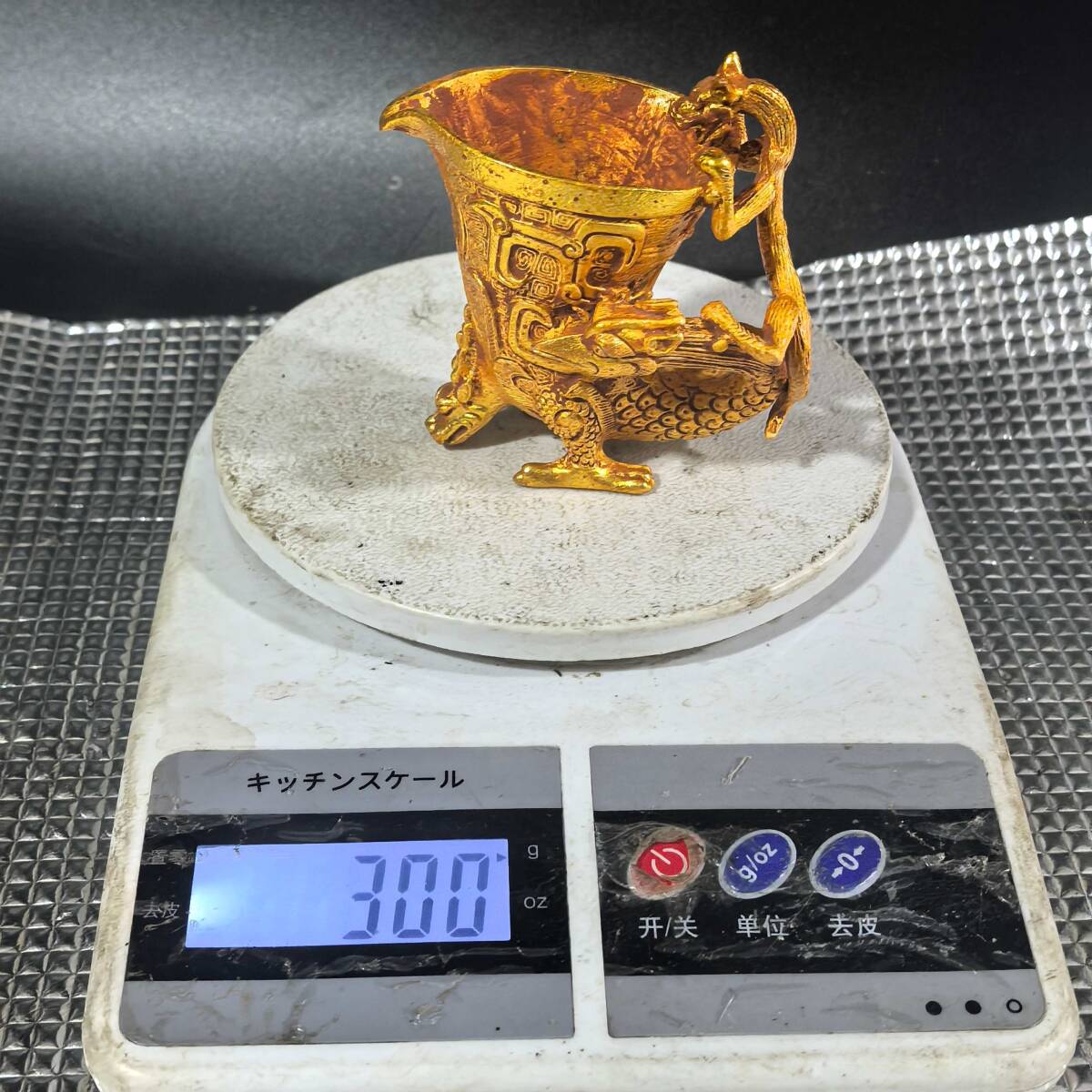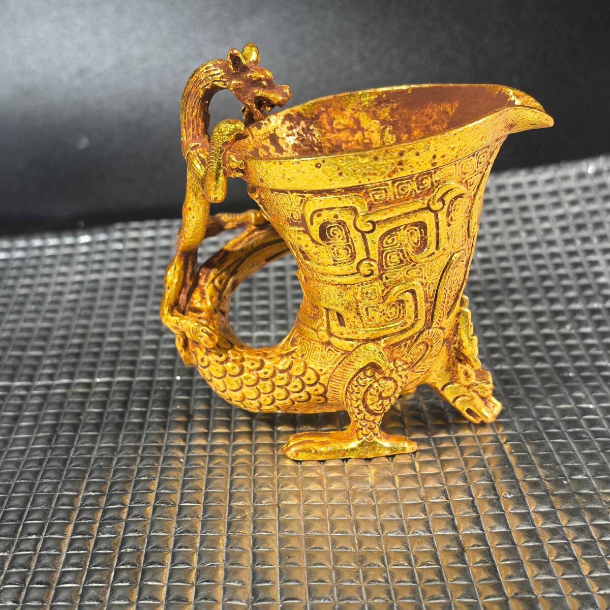 早期收集 銅流金彫 瑞獣 酒杯 酒樽 文案 置物 古擺件 時代物 古董品 骨董 收集 旧家蔵出し 唐物 中国古玩 古美術品
