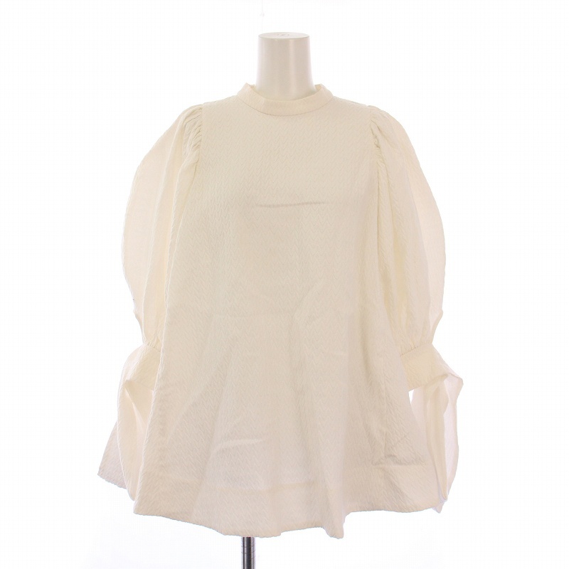 ヨリ yori shirocon 24SS ハートフクレカフスリボンブラウス シャツ 半袖 フレア ストレッチ 38 白 ホワイト SC21-24008SP-2