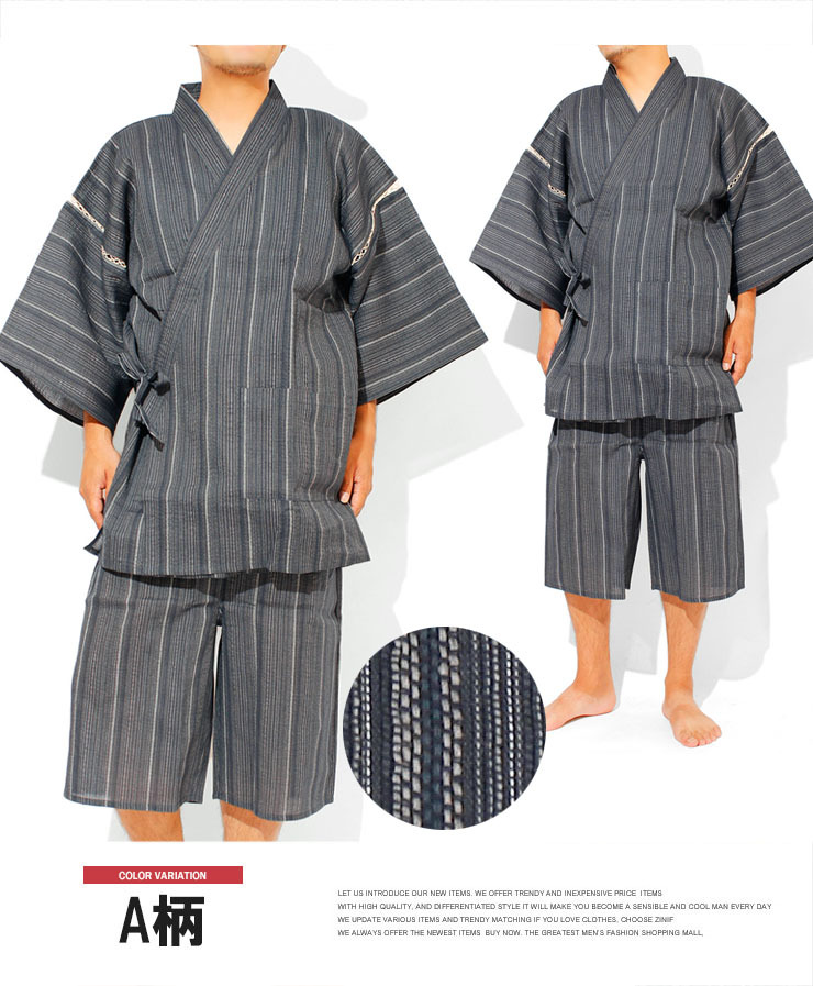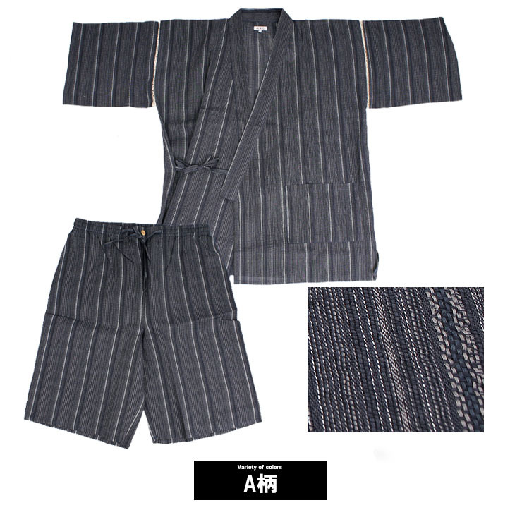| 商品名 | 【新品】 M A柄 甚平 メンズ しじら織り 和柄 上下 じんべい セットアップ 無地 ストライプ |