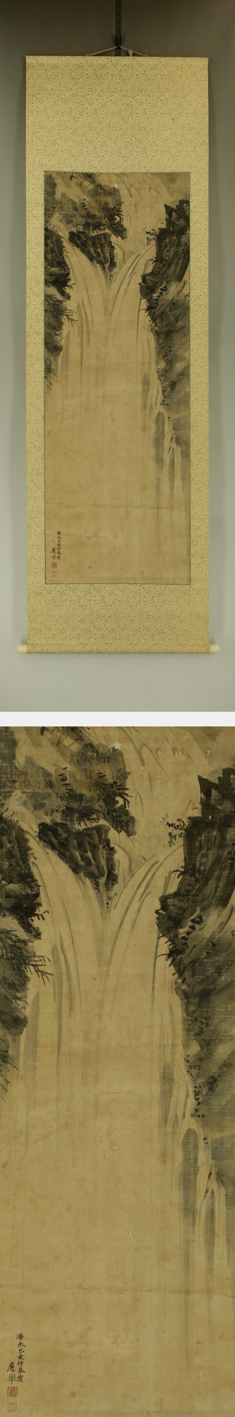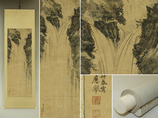 | №2505008【模写】円山応挙【瀑布図】◆紙本◆合箱◆掛軸 | |