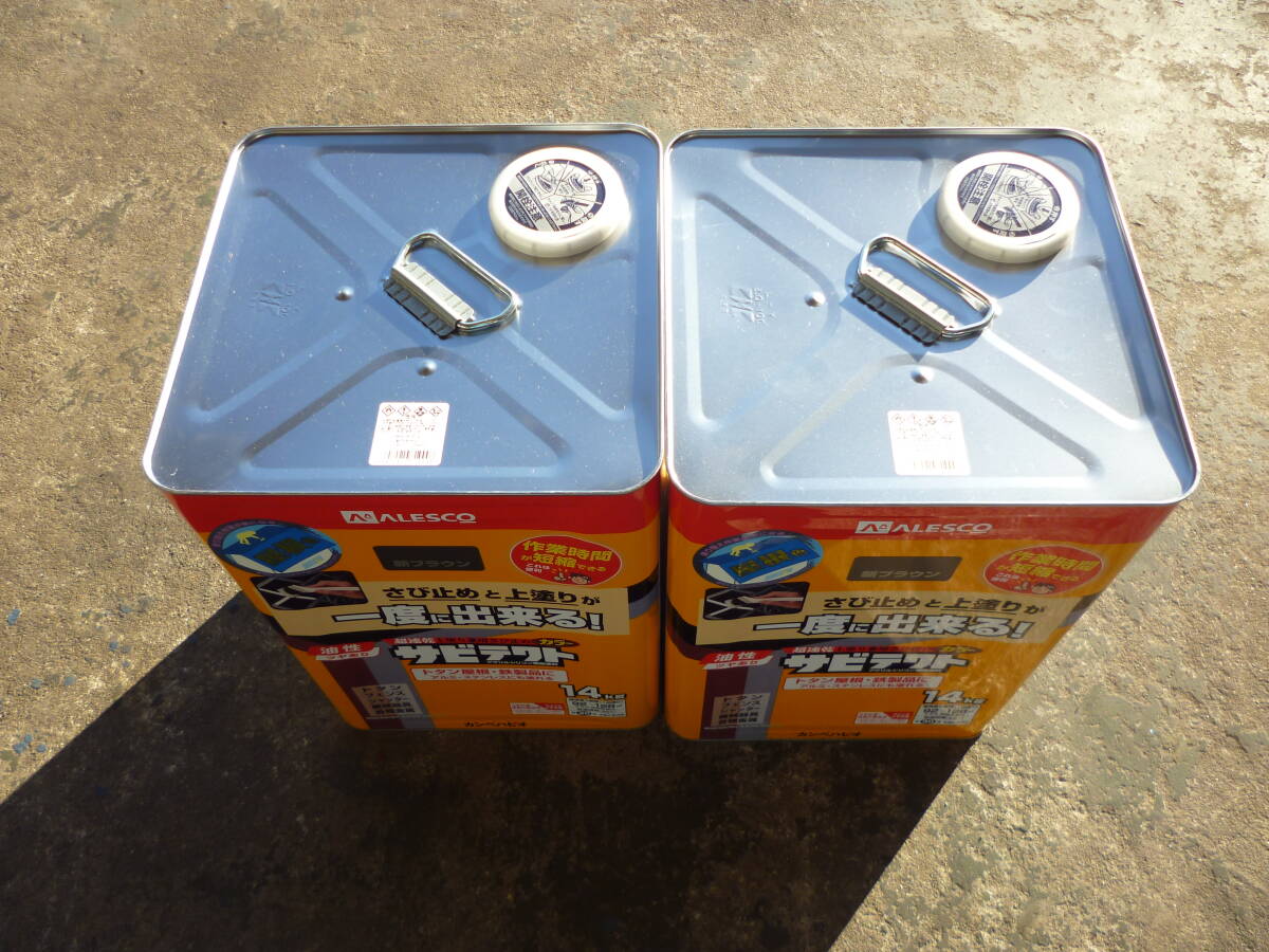 サビ止めと上塗りが同時にできる塗料 油性 1缶14K X2缶 28キロ 未開封 未使用 中古扱い使い方色々