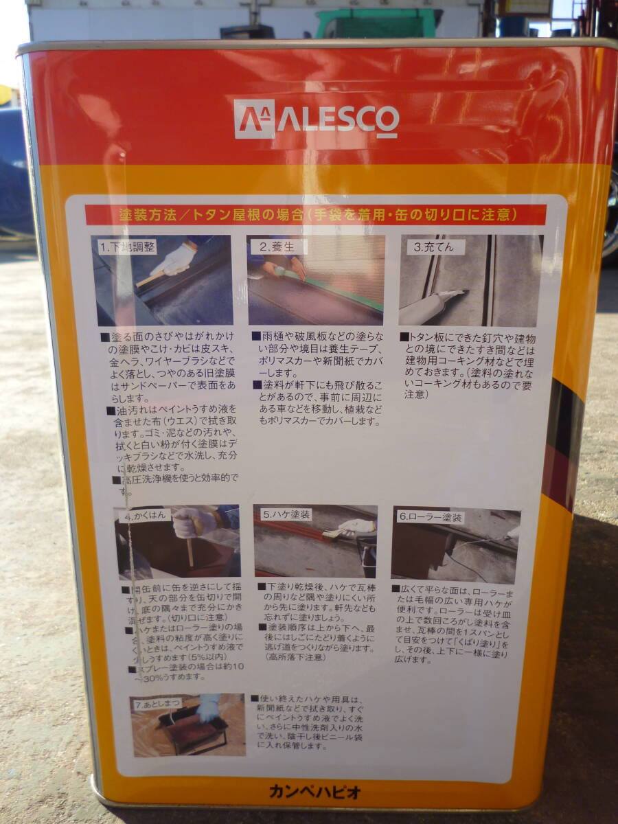 用途 門扉・シャッター・トタン・フェンス・鉄骨・農機具・遊具などの鉄部、アルミ 塗れない物 自動車、バイク、床面、常に水に浸かっている所、鉄以外の金属(ステンレス、メッキ、真ちゅう、銅、ホーロー)、シリコンなど特殊処理された素材 特長 ●特殊防サビ剤配合だから強力な防サビ効果をするのでサビ止めの塗装が不要です。 ●サビ止めと上塗りが同時にできるので作業時間が大幅に短縮できます。 ●高耐久アクリル・シリコン樹脂配合だから紫外線・排ガス・雪・酸性雨など外敵から建物を守り、長期間風合い・ツヤを保ちます。 乾燥時間 約30分(20℃) 約2時間(冬期)  重ね塗り時間 2時間以上(20℃) 6時間以上(冬期) 塗り面積(m2) 約 92〜12 塗り重ね回数 1回