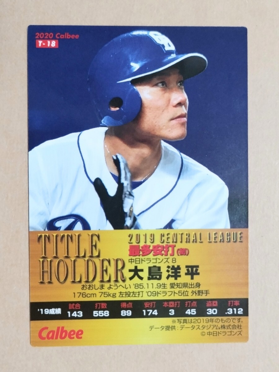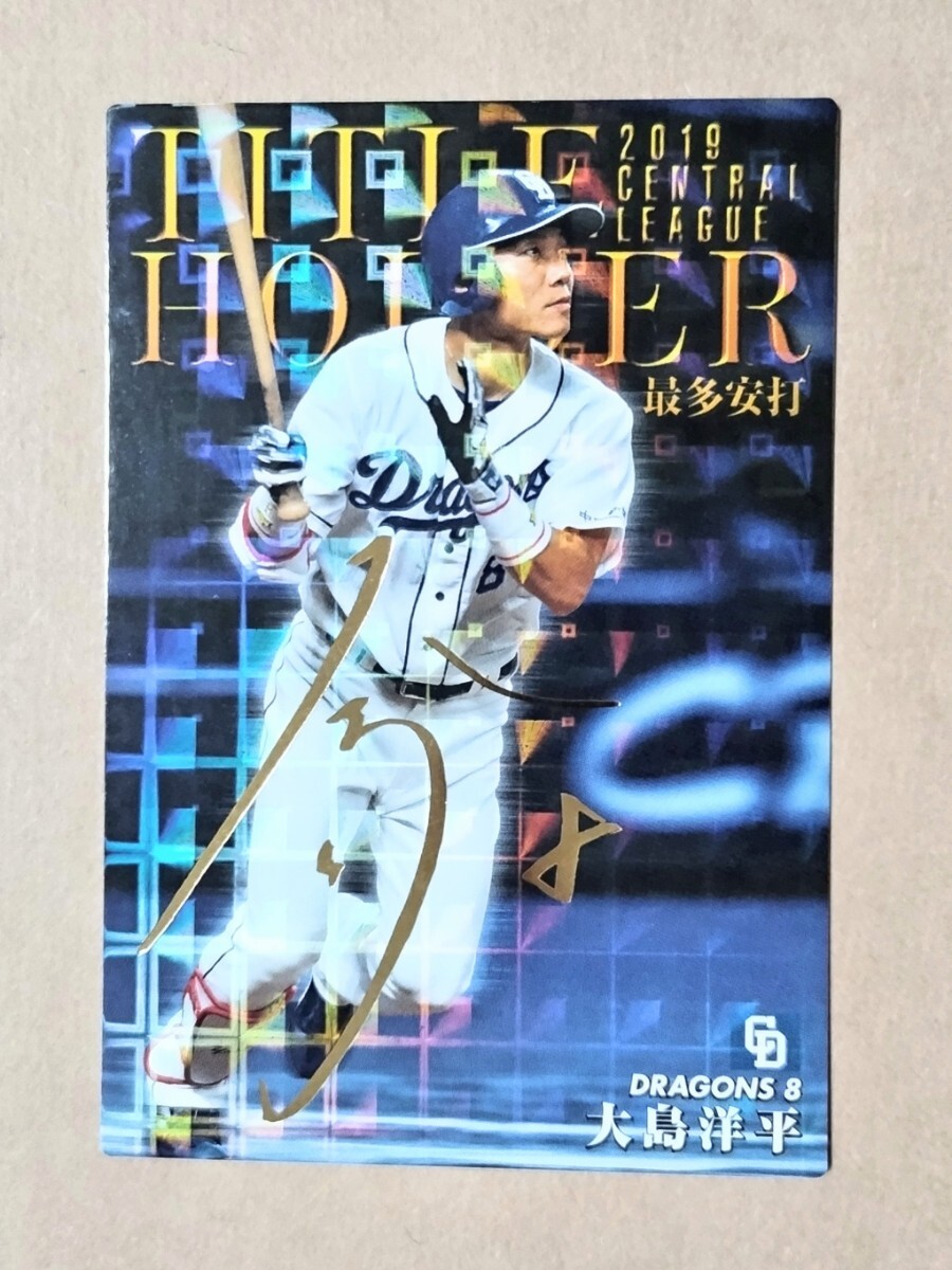 カルビー プロ野球チップス 2020 タイトルホルダーカード 金サイン 大島洋平(中日) T-18