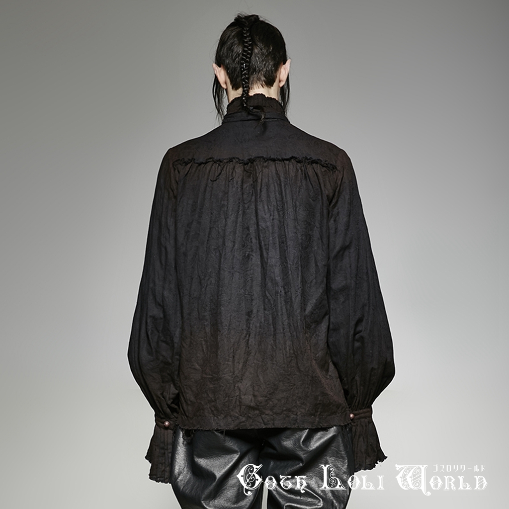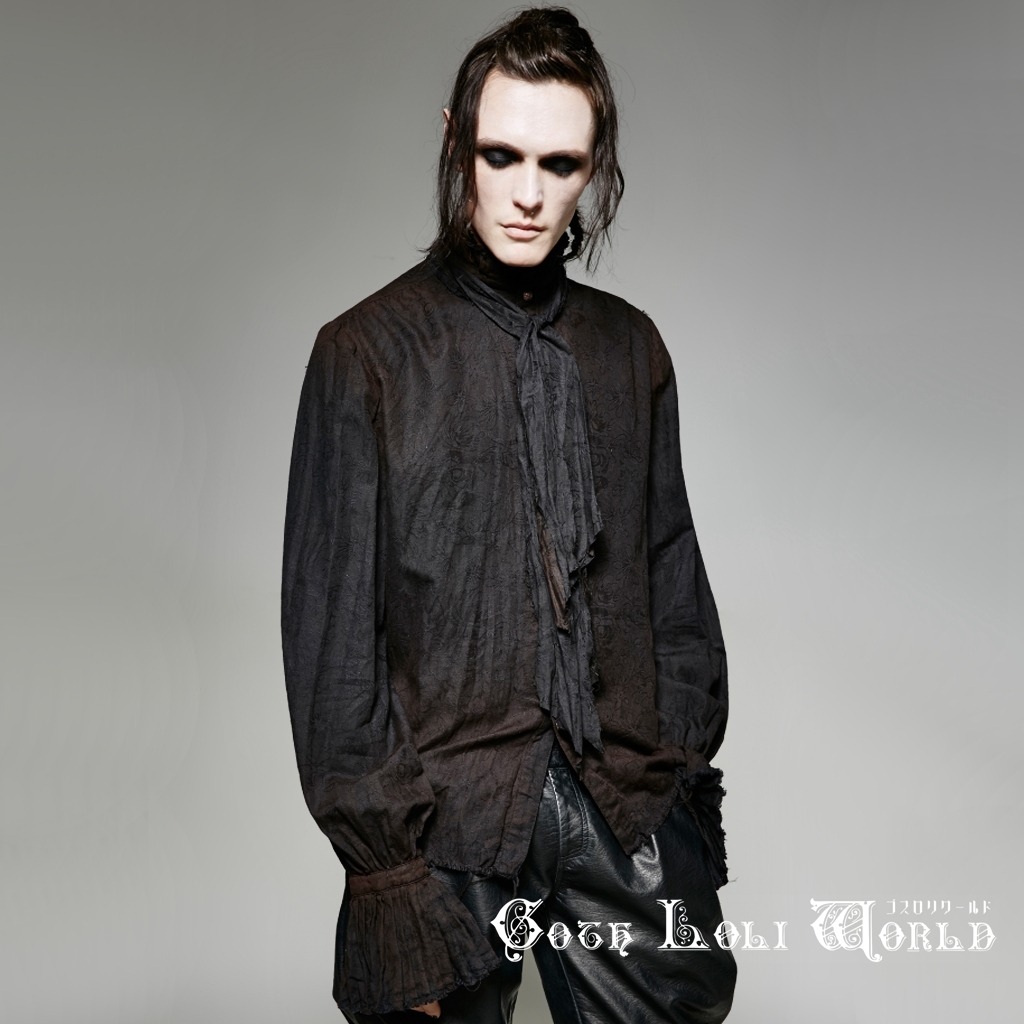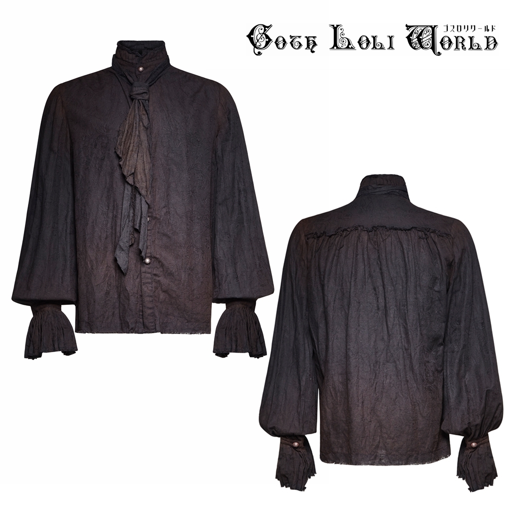 即納 Y-714-BK-M スチームパンク ファッション ムラ染め ダメージ ブラウス シャツ ブラック 黒色 メンズ ゴシック パンク ロック