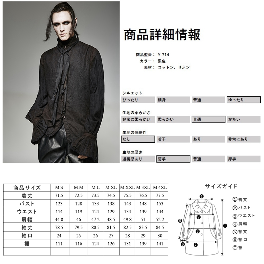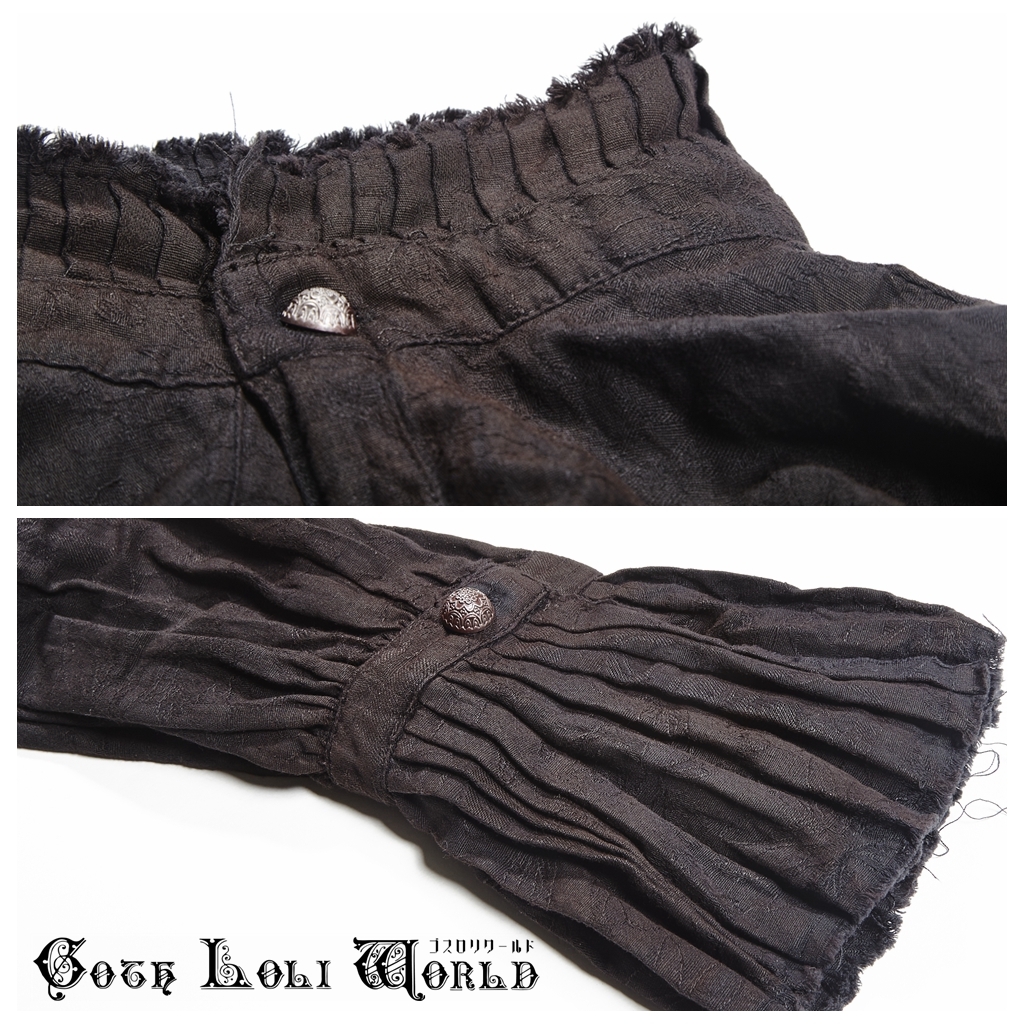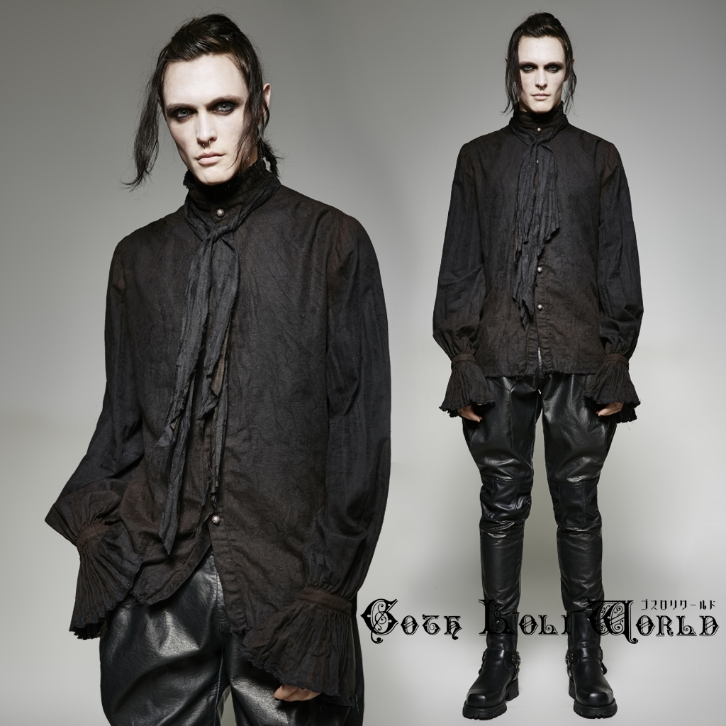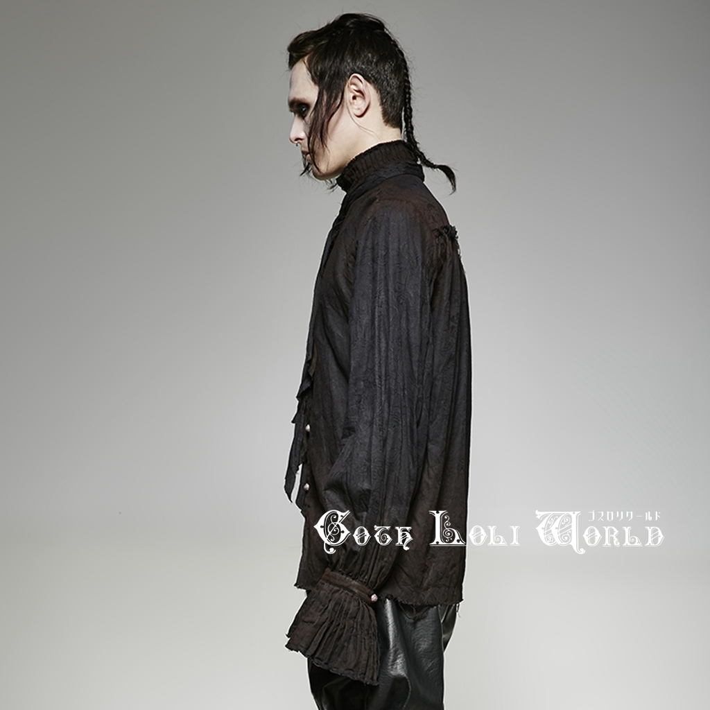 即納 Y-714-BK-M スチームパンク ファッション ムラ染め ダメージ ブラウス シャツ ブラック 黒色 メンズ ゴシック パンク ロック