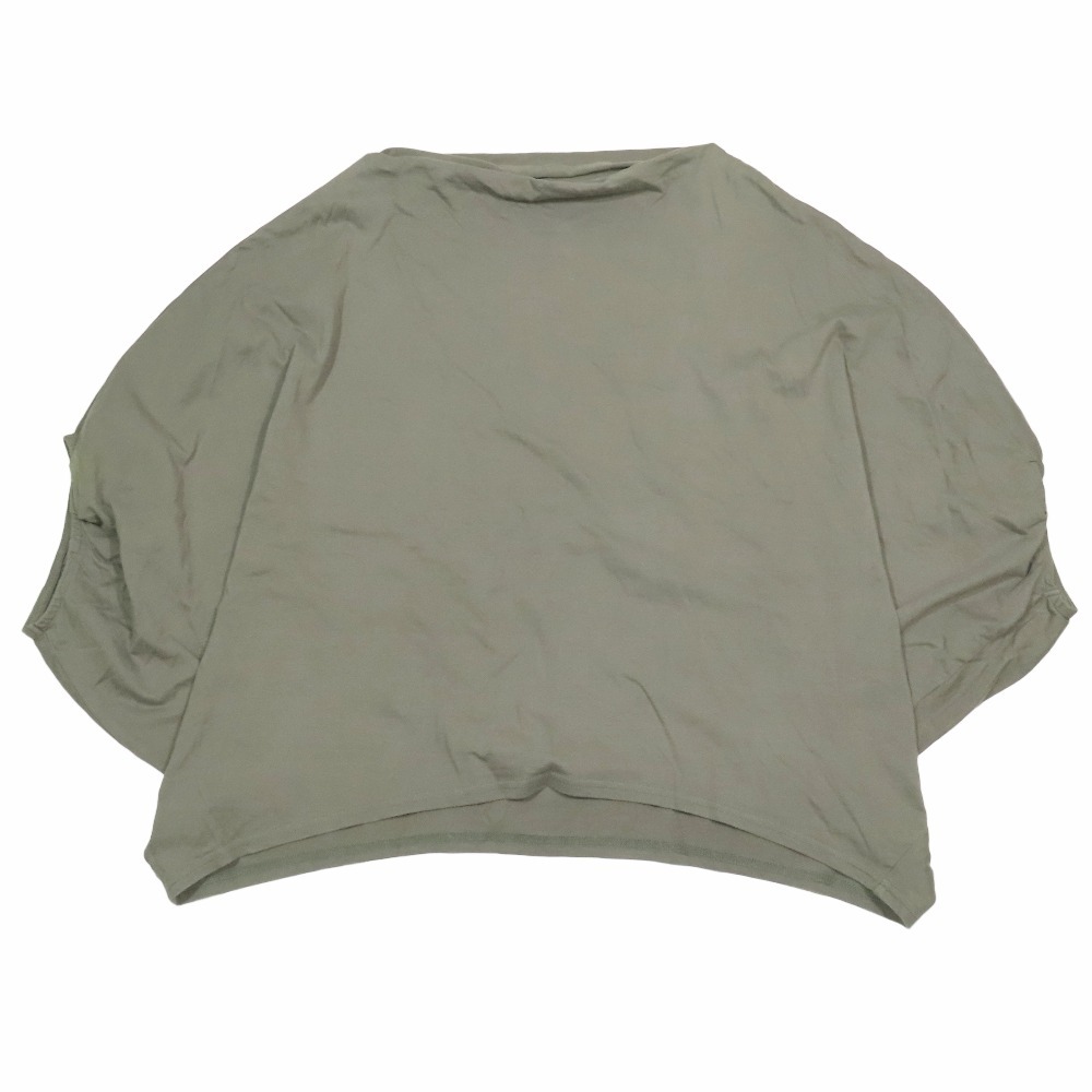 商品名:mizuiro ind ミズイロインド 七分袖 Tシャツ カットソー ドルマンスリーブ ボートネック ドレープ プルオーバー カーキ