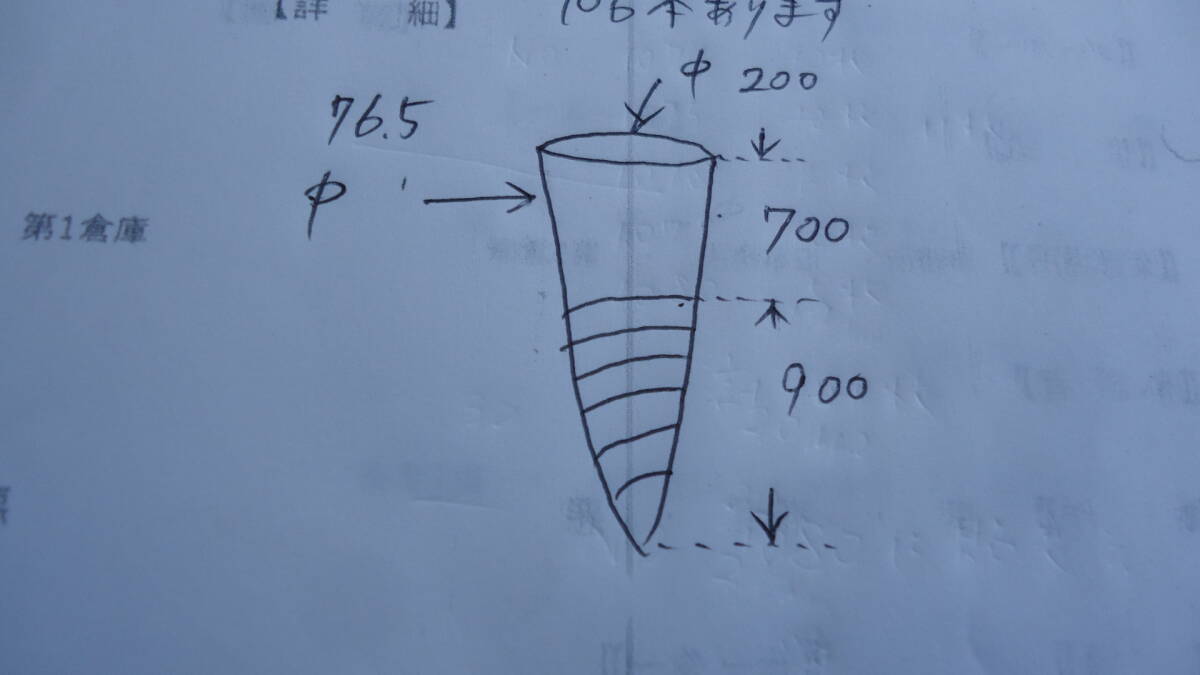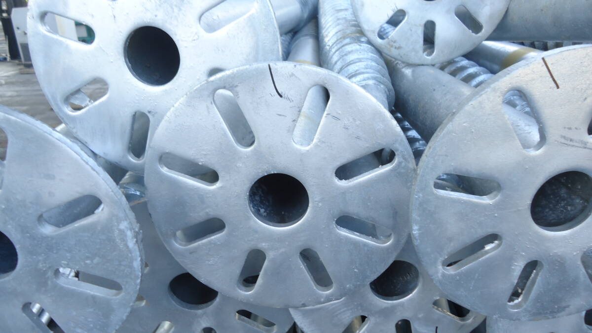 長さは1600㎜が128本。 杭の太さは76.5㎜程。 フランジのついてるものがほとんどだが、中にはついてないものもあるかもしれん。 本数の数え間違いもあるかもしれんのでざっくりでお願いします。