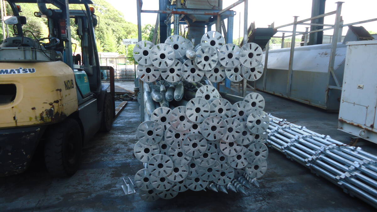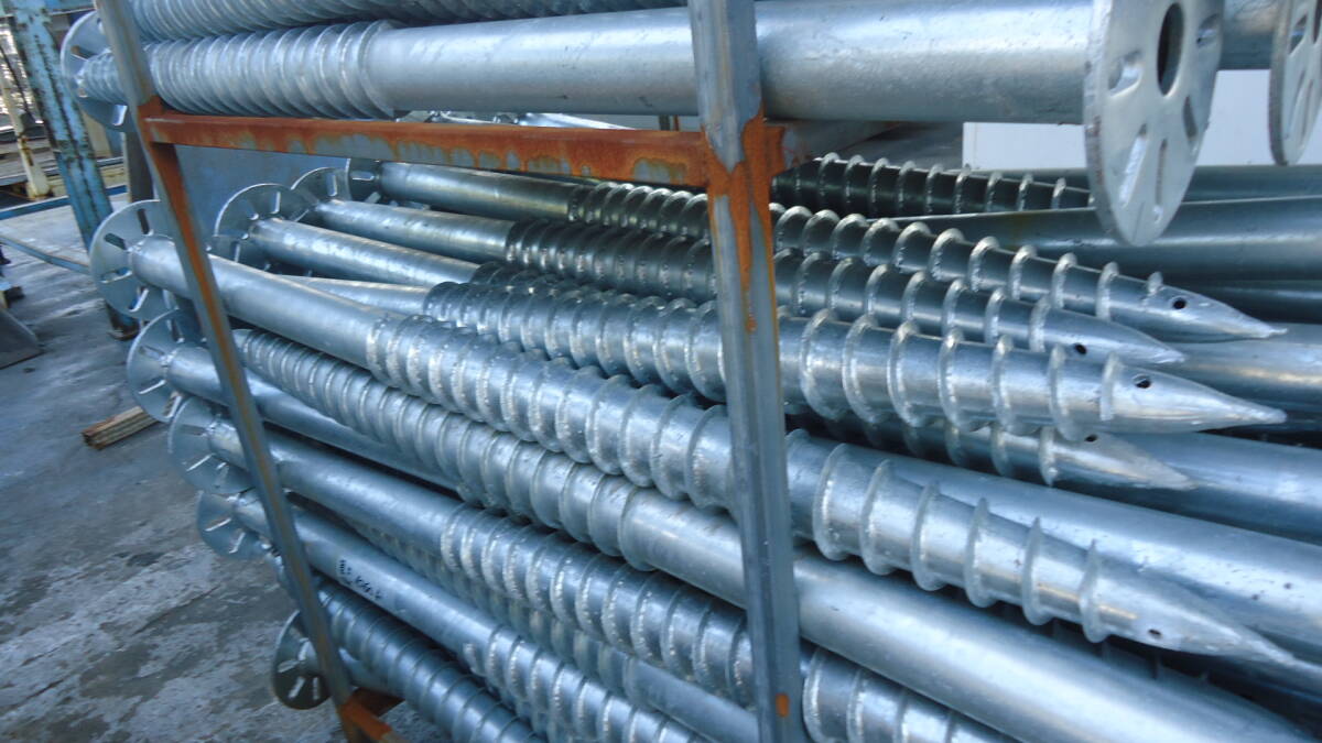 油谷 №2001 スパイラル杭 スクリュー杭 フランジ付き 埋め込み支柱 太陽光 ソーラーパネル 設置 基礎杭 架台 地中ビス アースドリル