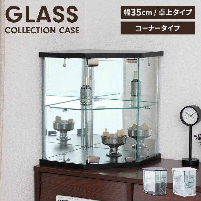 | コレクションケース 卓上 コーナータイプ ガラス 背面ミラー 扉付き 幅35 奥行35 高さ43 ディスプレイ 推し活棚 収納棚 ディスプレイケース 収納シェルフ ガラスケース 推し活収納ラック フィギュア棚 見せる収納 コーナー 机上 ガラス扉 鏡 インテリア フィギュア リビング 寝室 ワンルーム ブラック ホワイト |
