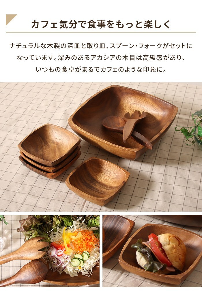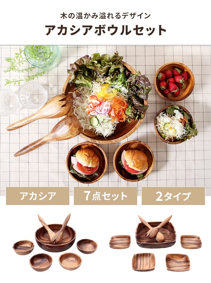 アカシア食器 ボウルセット 7点 お皿 スプーン フォーク テーブルウェア 木製食器 ラウンド スクエア おしゃれ ナチュラル 木製食器セット プレートセット 取り皿 木製カトラリー 小皿 和食器 洋食器 ファミリー用 7個 キッチンウェア サラダボウル 盛り付け 小物入れ 便利 食卓 ダイニング |