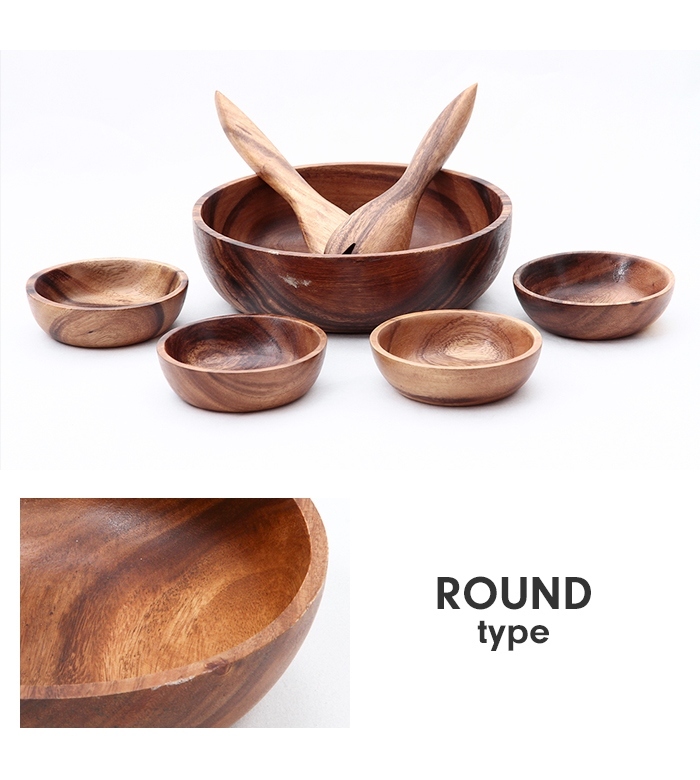 木の温かみ溢れるアカシアラウンドボウルセット。 |