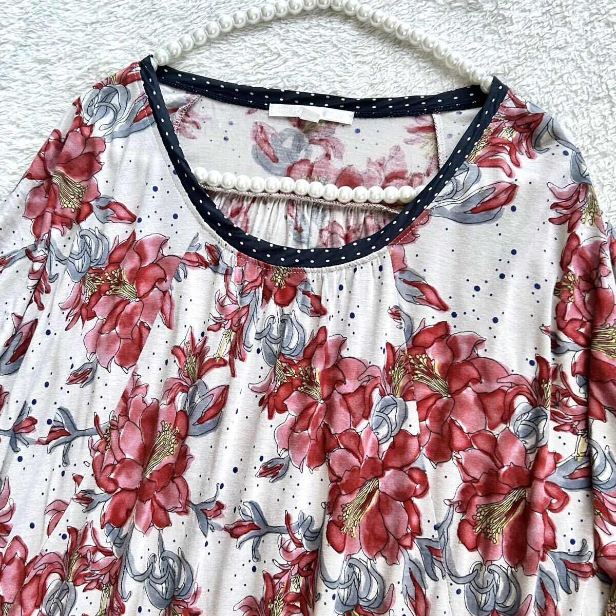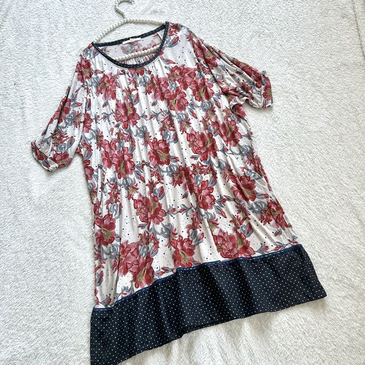 KEI Hayama PLUS/ケイハヤマ プリュス ゆったり 花柄 チュニック カットソー トップス F 大きいサイズ◯