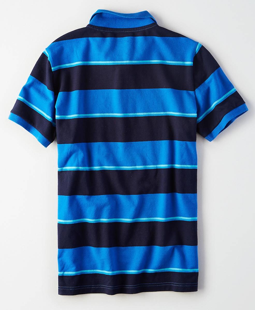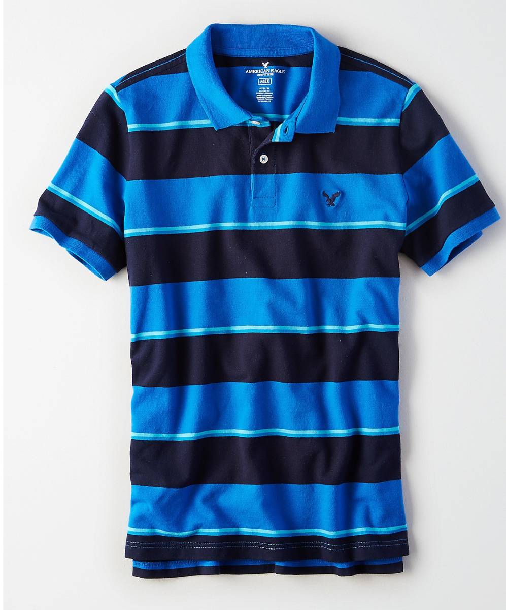 セール!!◇◆AE/アメリカンイーグル/ AEOストライプフレックス鹿の子ポロ / US S / E.Blue /新品