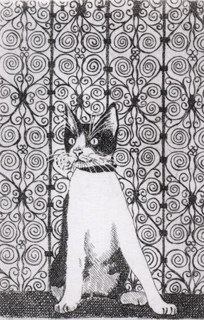 扉の前の猫/銅版画・エッチング/新品、作品のみ