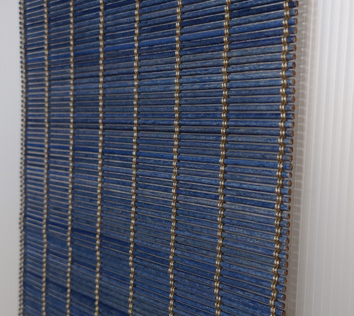 材質[木簾]シナ材を直径約2mmのヒゴ状に 加工し、ブルー色に着色