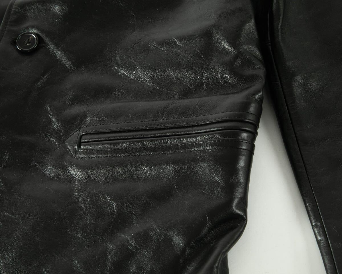 質感の点数:85点。(なめしの工程で多種のオイルを入れるので、一般的な茶芯ホースハイドより柔らかいです)