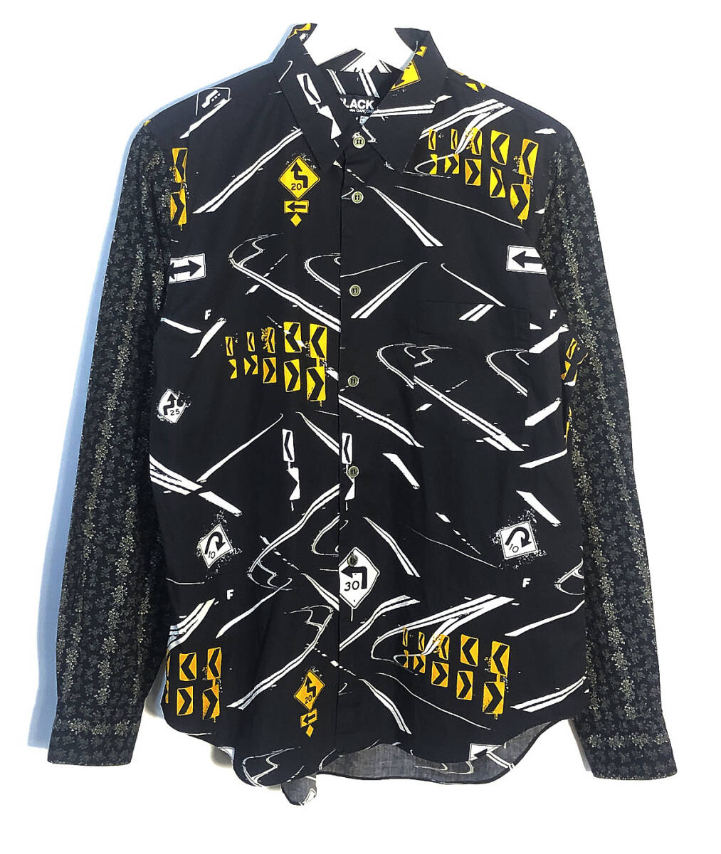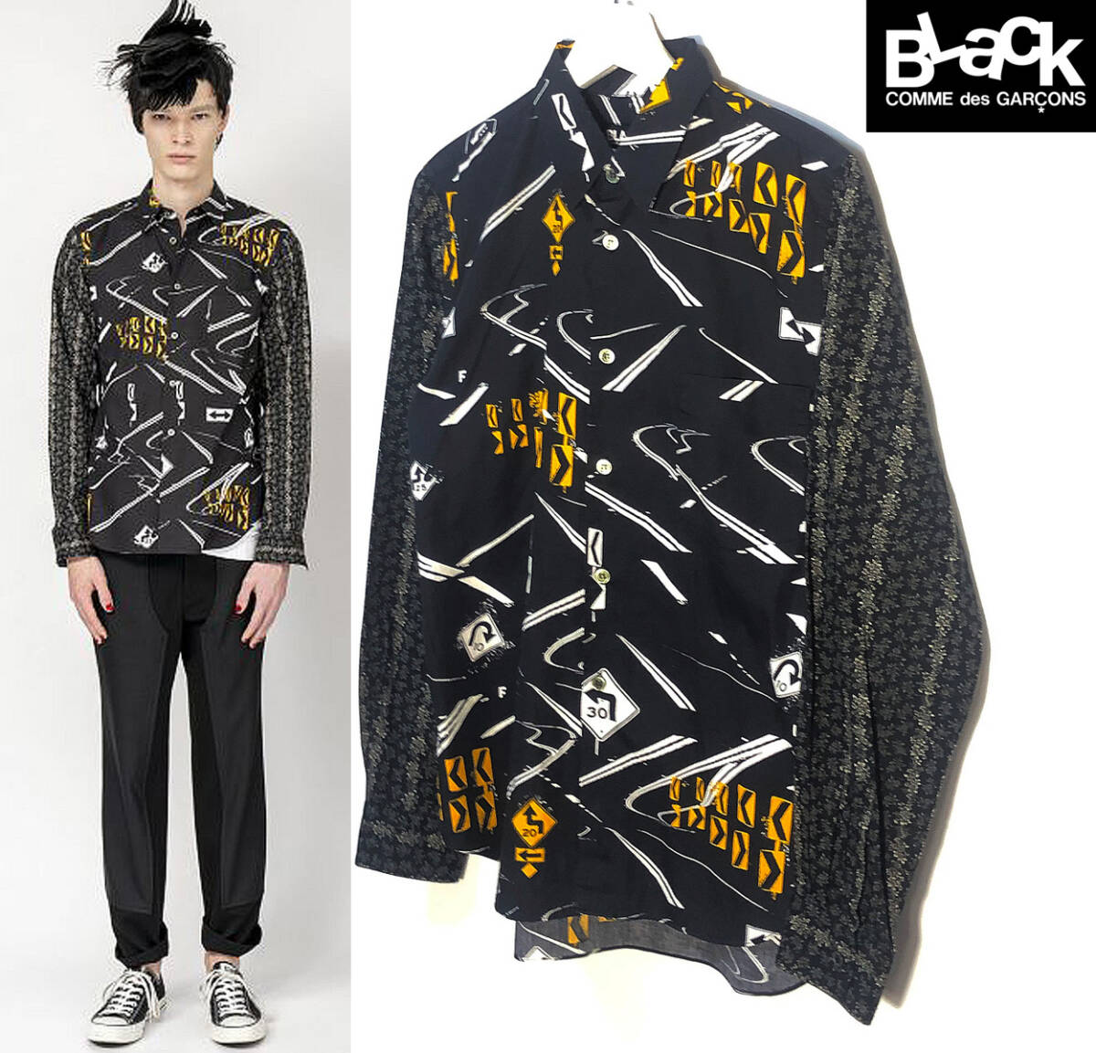 1円~ランウェイ着用/ビッグサイズ■20S/S ブラックコムデギャルソン 長袖切替シャツ■Mサイズ■BLACK COMME des GARCONS L/S-Shirts■