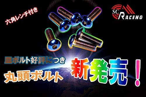 【在庫限りです】【タイムセール】ボルト丸型高性能ステアリングホイール用チタンカラー角根丸頭M5×15mmRACING六角レンチ付6本セットSC