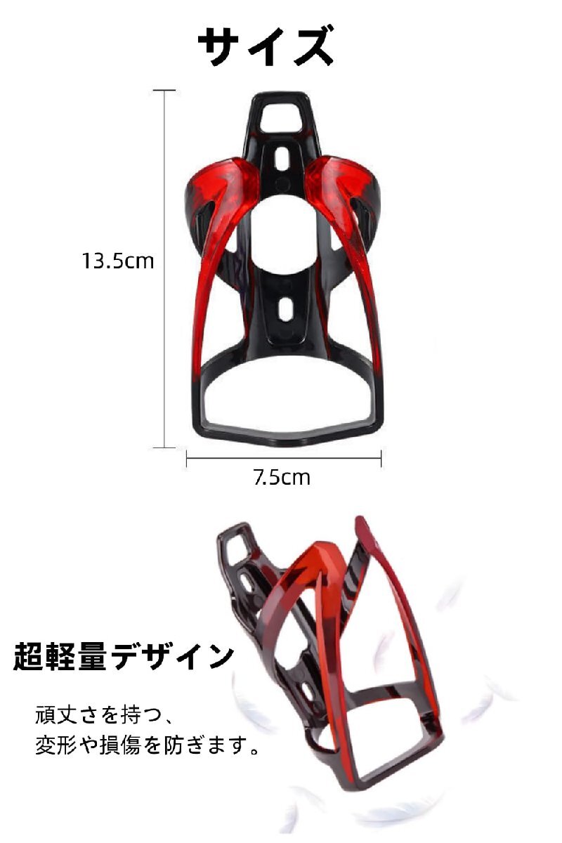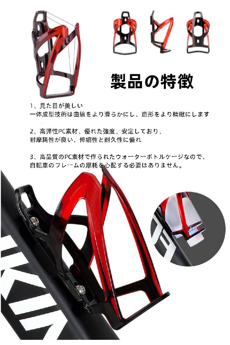 【高品質素材】高品質のPC素材で作られたボトルケージは、超軽量、耐摩耗性が良い、伸性と耐久性に優れています。一体成型技術は曲線をより滑らかにし、造形をより精緻にします。