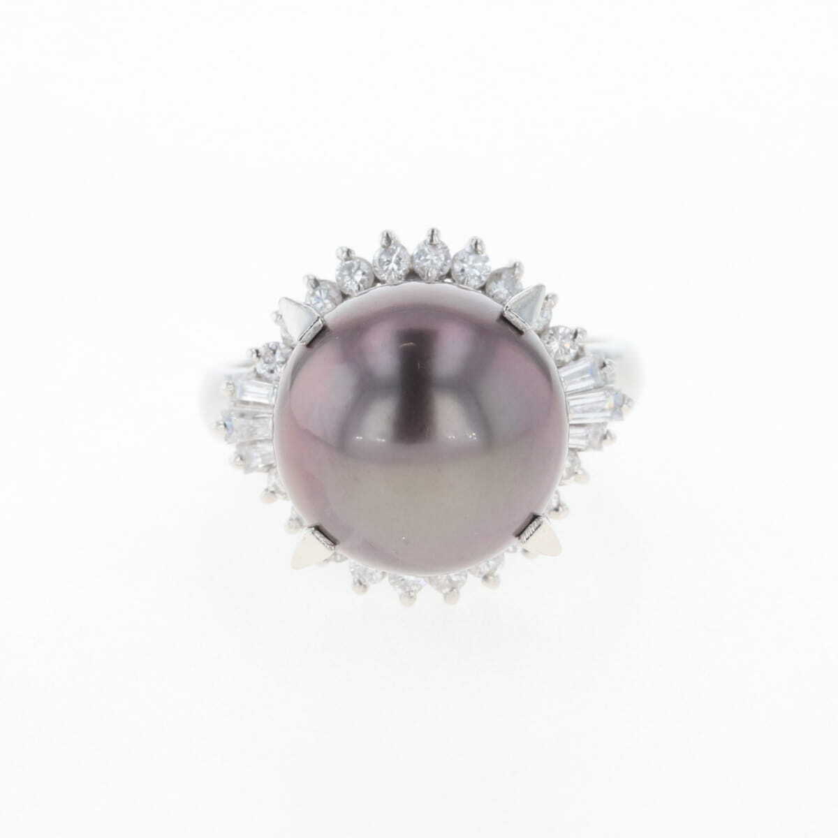 パール デザインリング プラチナ 指輪 メレダイヤ 真珠 リング 11.5号 Pt900 パール ダイヤモンド レディース 【中古】 |