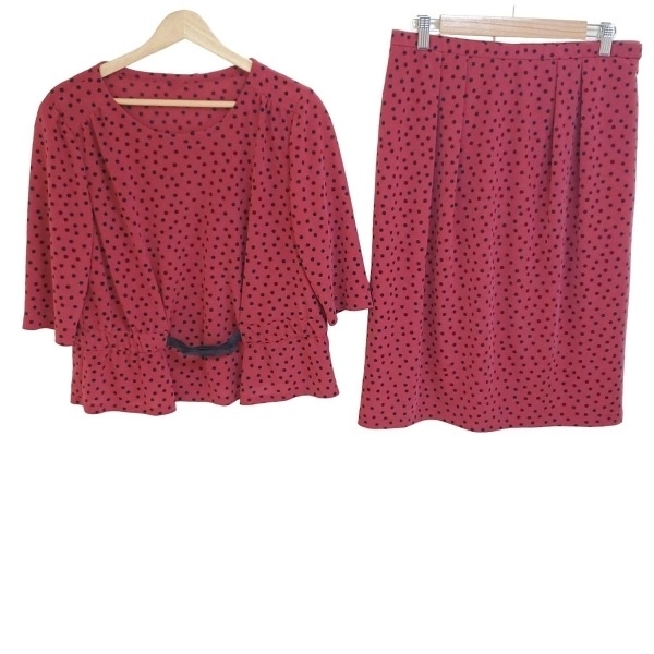 レリアン Leilian スカートセットアップ - レッド×黒 レディース リボン/ドット柄 レディーススーツ