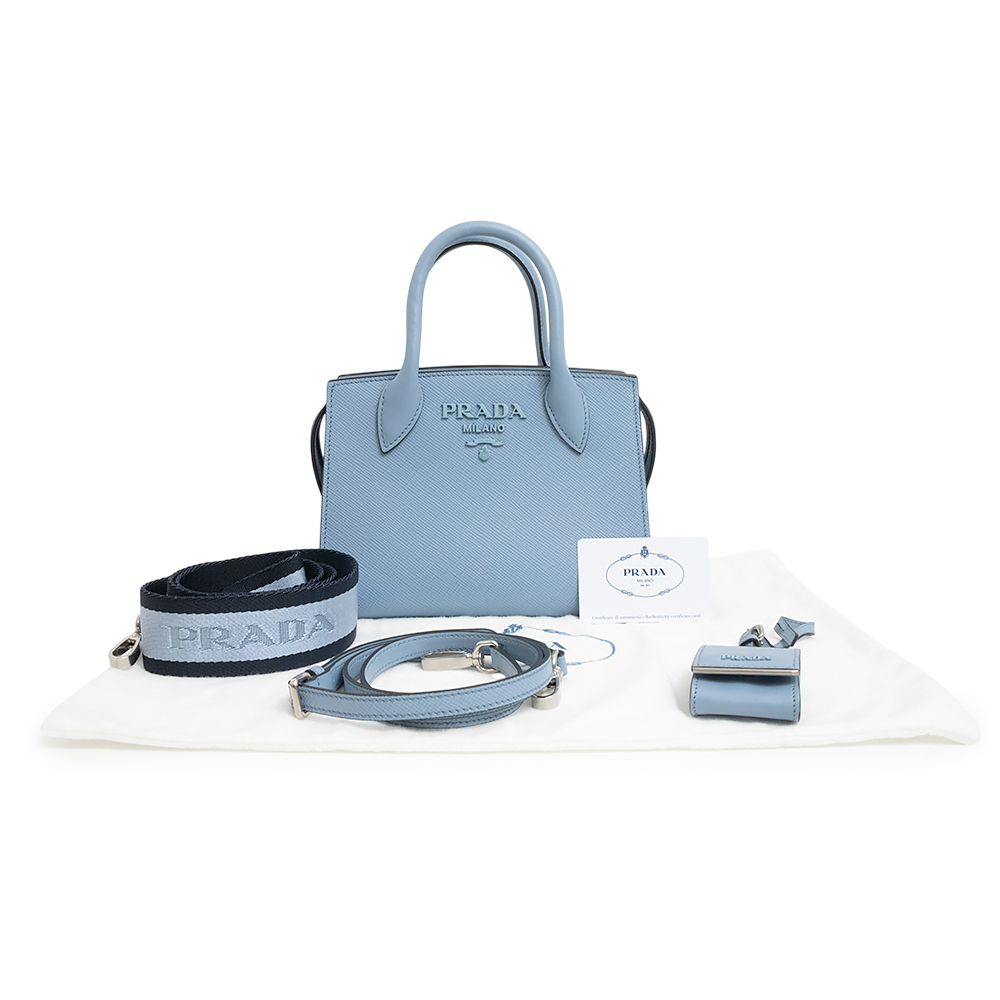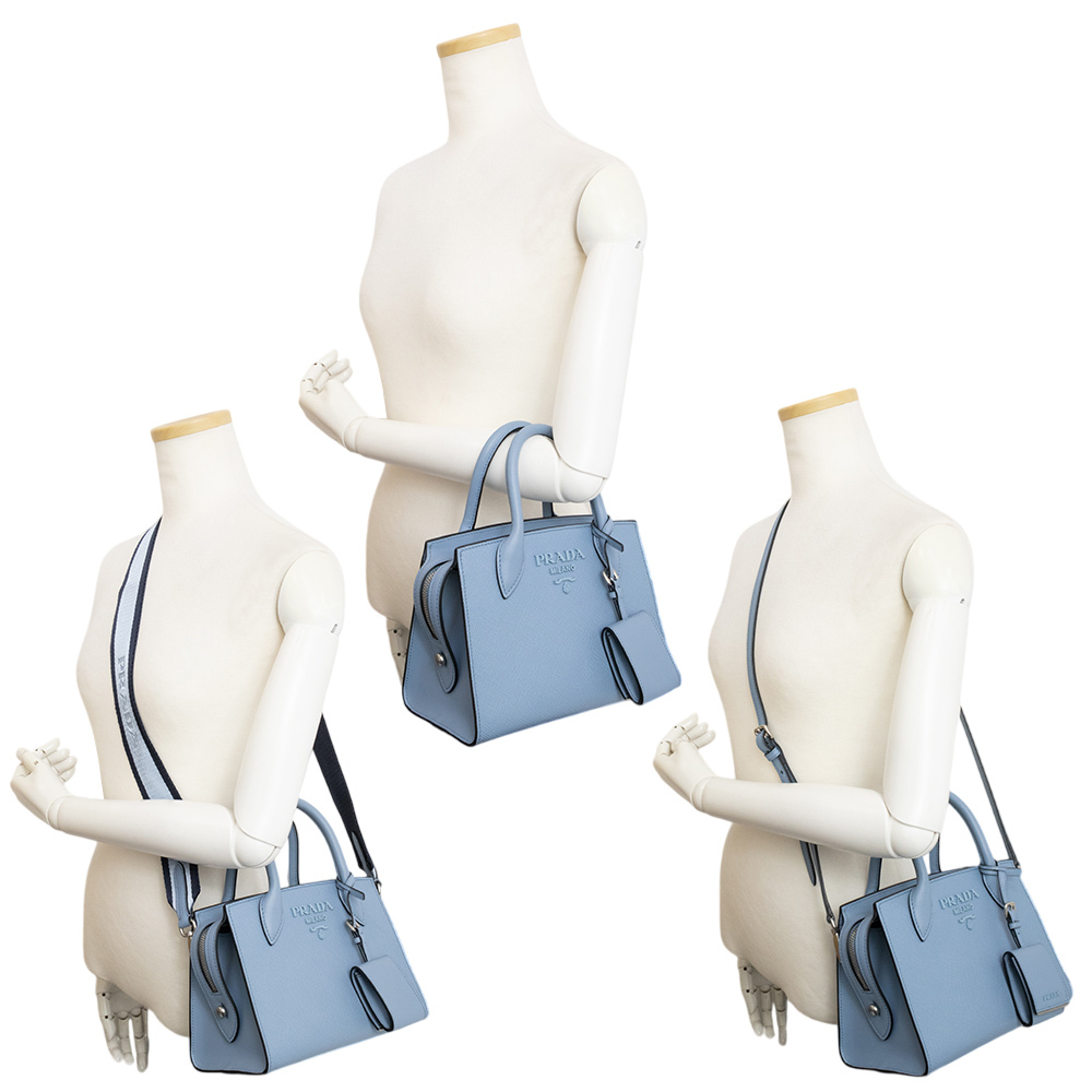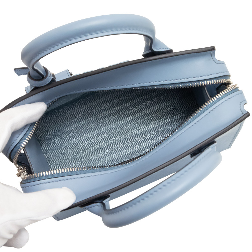 (未使用 展示品)プラダ PRADA モノクローム スモールバッグ ショルダー ハンドバッグ サフィアーノ レザー ライトブルー 水色 1BA269