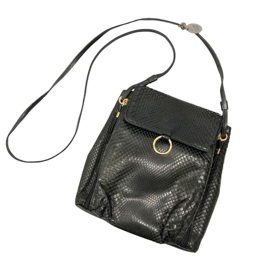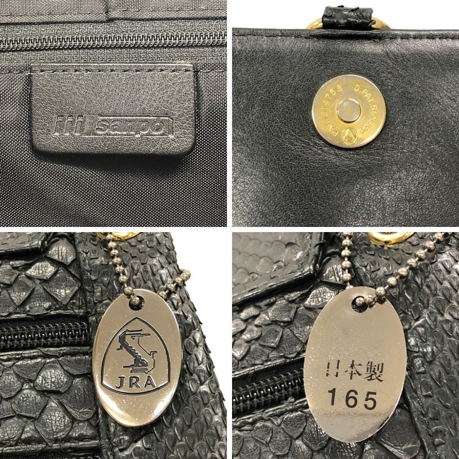 サンポー エキゾチックレザー パイソン ショルダーバッグ ブラック レディース JRA認証 日本製 SANPO【AFE6】