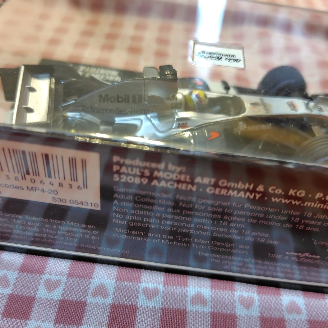 ミニチャンプス1/43マクラーレンメルセデスMP4-20です。3年程前に購入して現品確認後は、箱に入れて丁寧にモデル部屋で保管していました。退職に伴うコレクション整理です、モデルも箱も傷や擦れはありません。宜しくお願い致します。