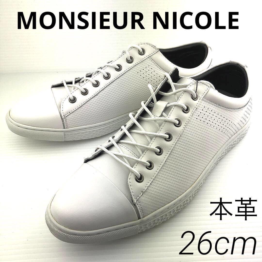 K000新品MONSIEUR NICOLEジオメトリック柄スニーカー26cmWH