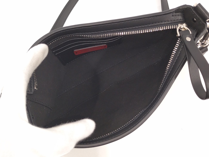 ◆商品情報 | ・カラー:ブラック ・素材/ライン:レザー ・サイズ:最大約 W25×H16×D4(cm) ・ショルダーの長さ:最大約107-117(cm) ※多少の誤差はご了承下さい。 ・外側:オープンポケット×2 ・内側:カード入れ×3 |