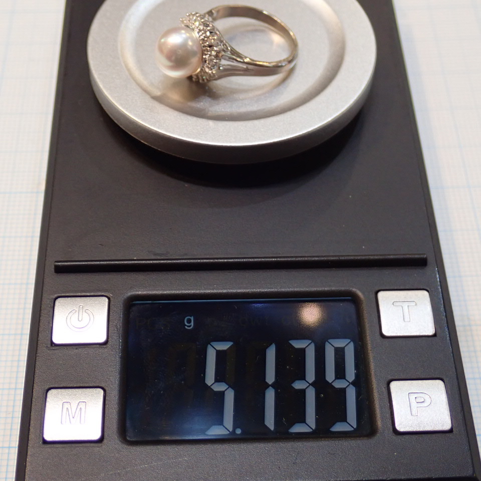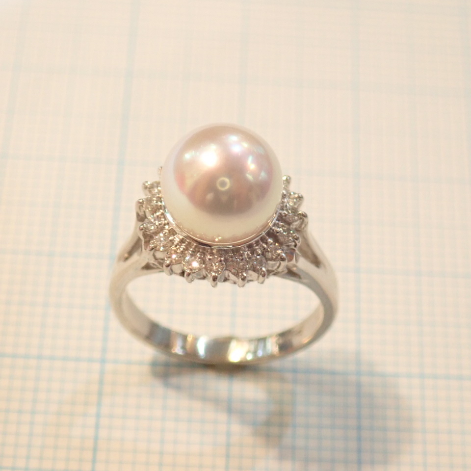 Pt900製の約約8.2mm あこや真珠リングになります。