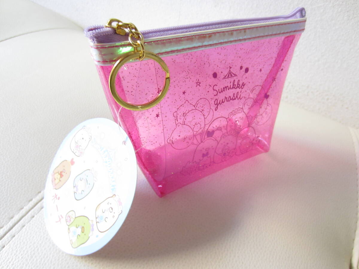 ★【送料込み・未使用品】「すみっコぐらし ラメ入りポーチ(ピンク)」&「ざっそう ラバーマスコット」★