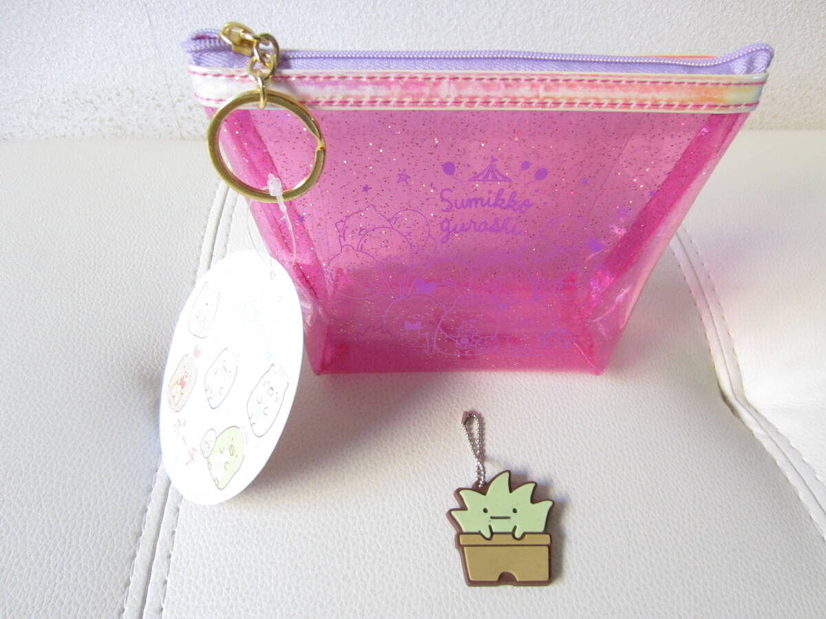 ★【送料込み・未使用品】「すみっコぐらし ラメ入りポーチ(ピンク)」&「ざっそう ラバーマスコット」★