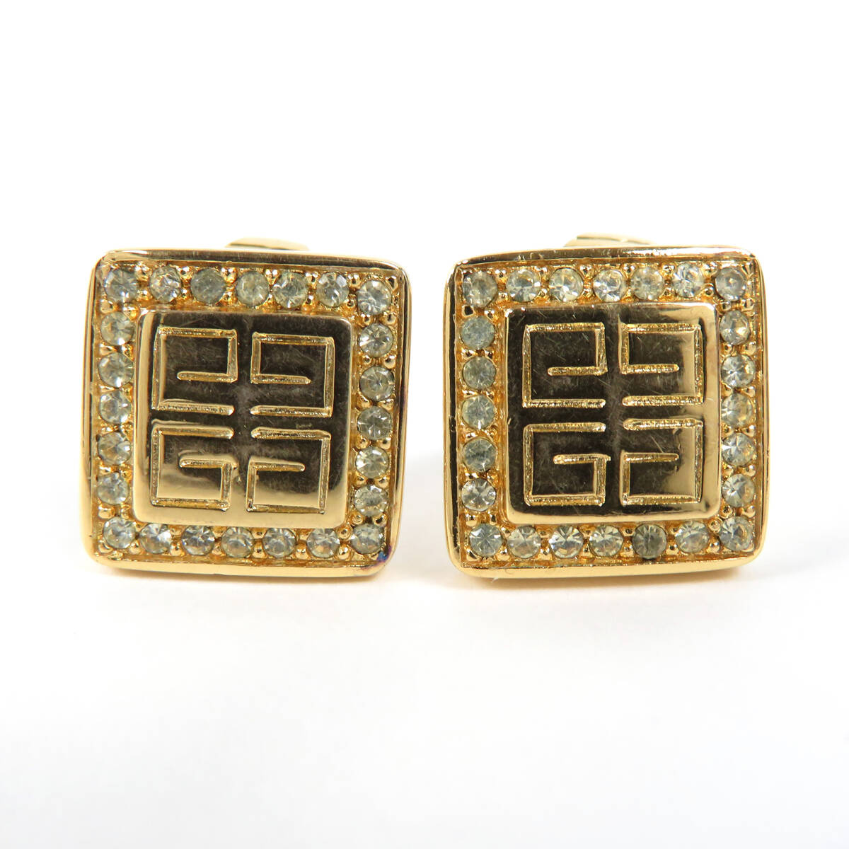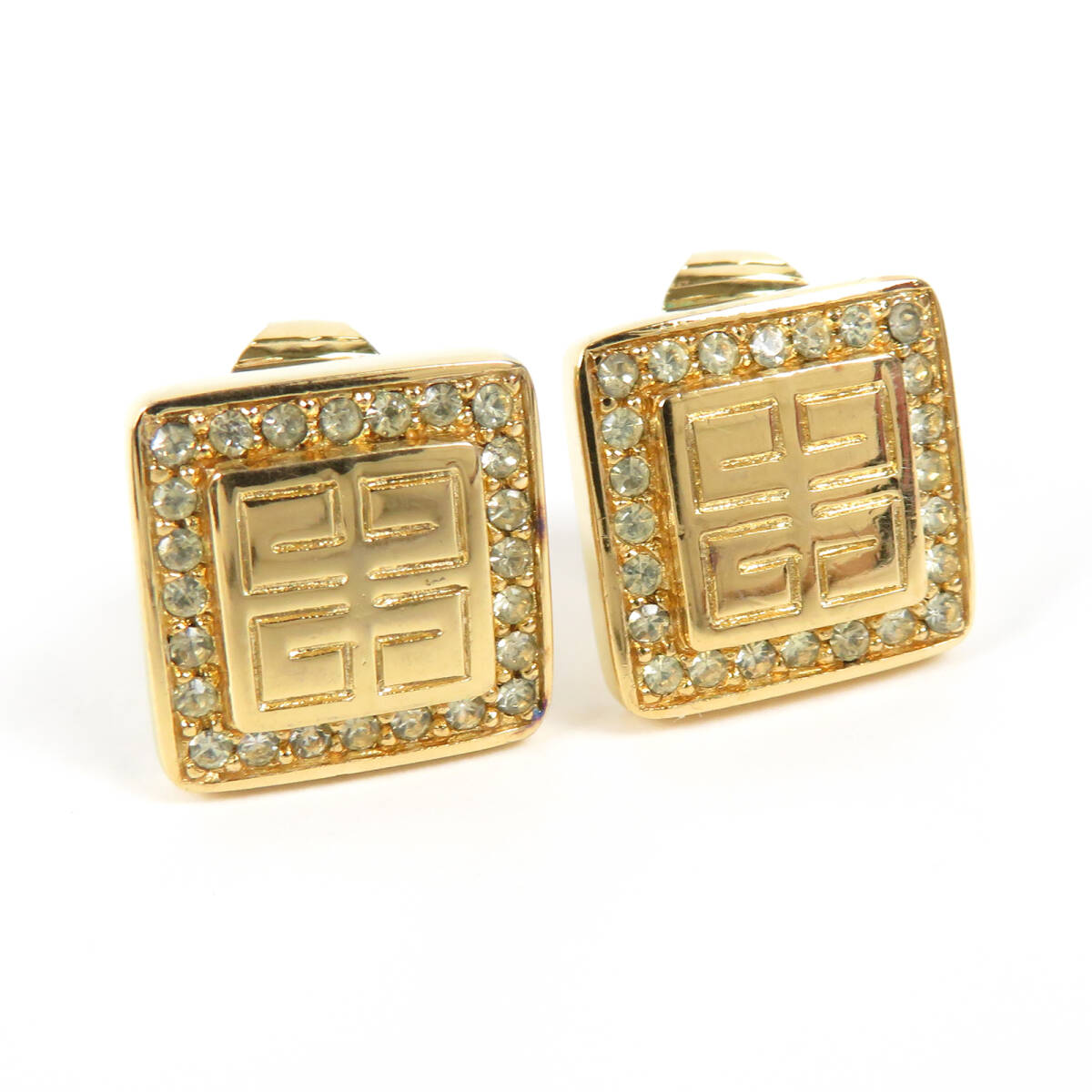 GIVENCHY ジバンシー ロゴ ラインストーン スクエア イヤリング ゴールドカラー ヴィンテージ ジバンシィ |