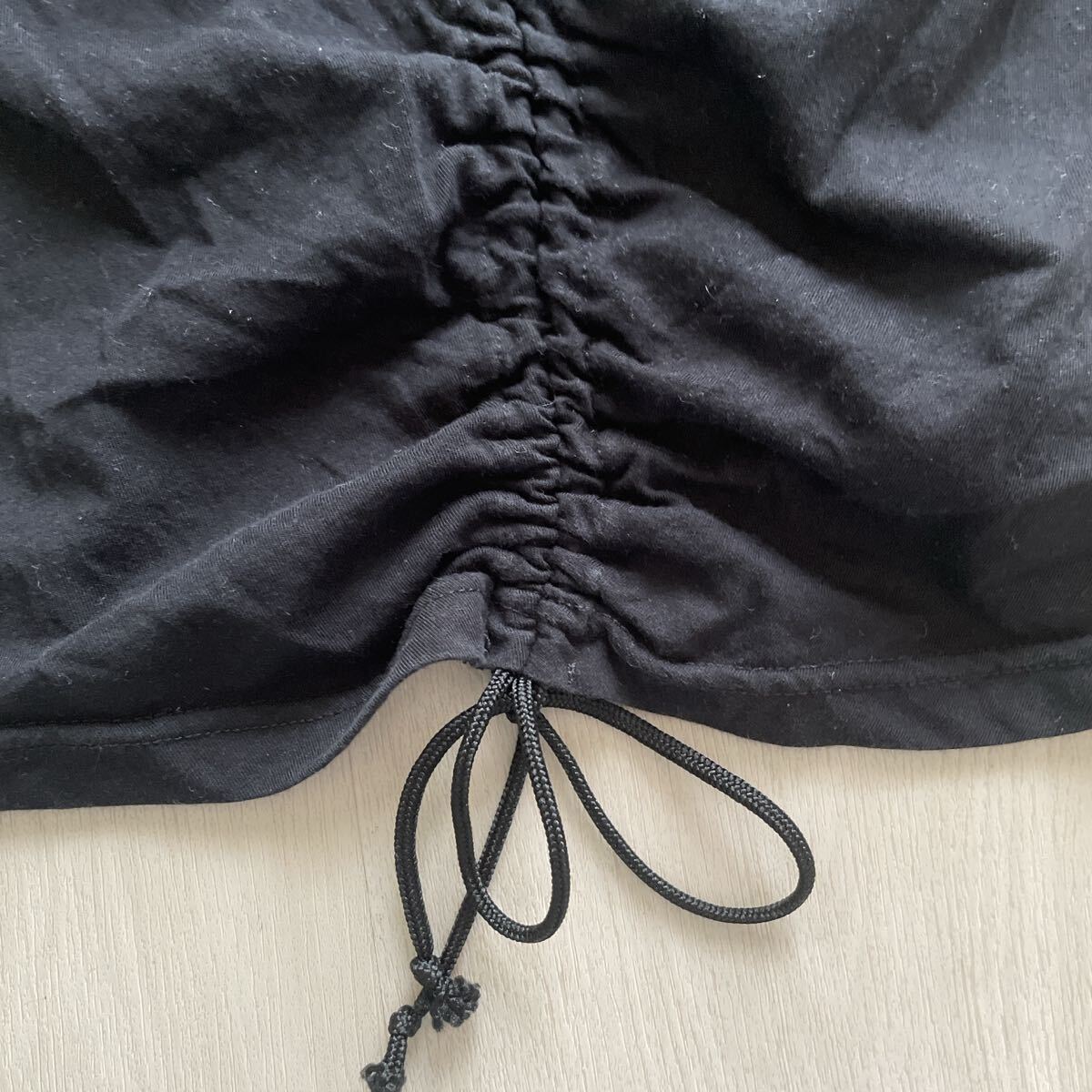 フロントギャザーが特徴で裾は紐調整出来ます。