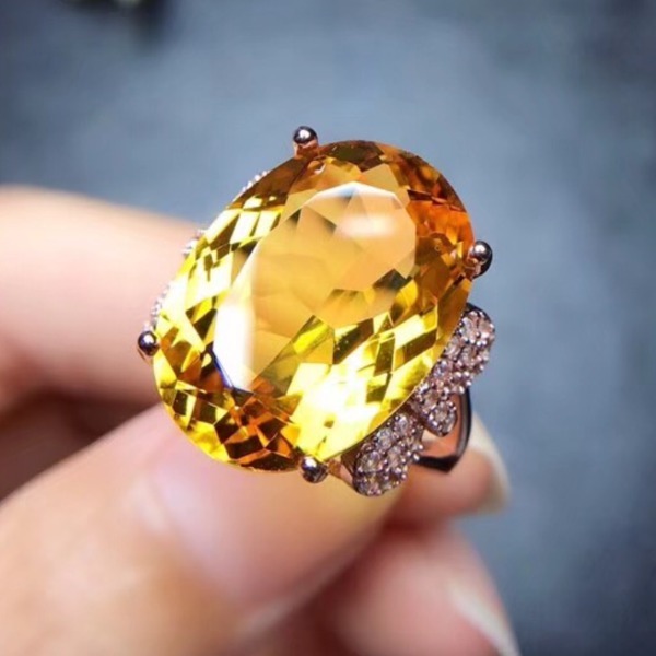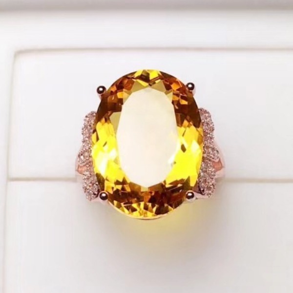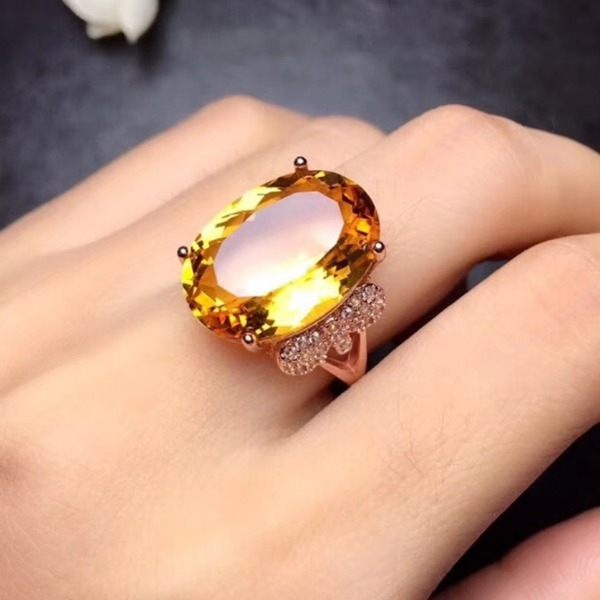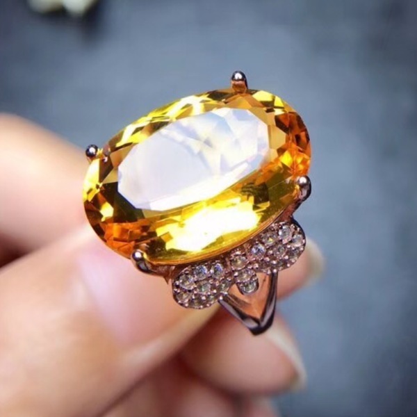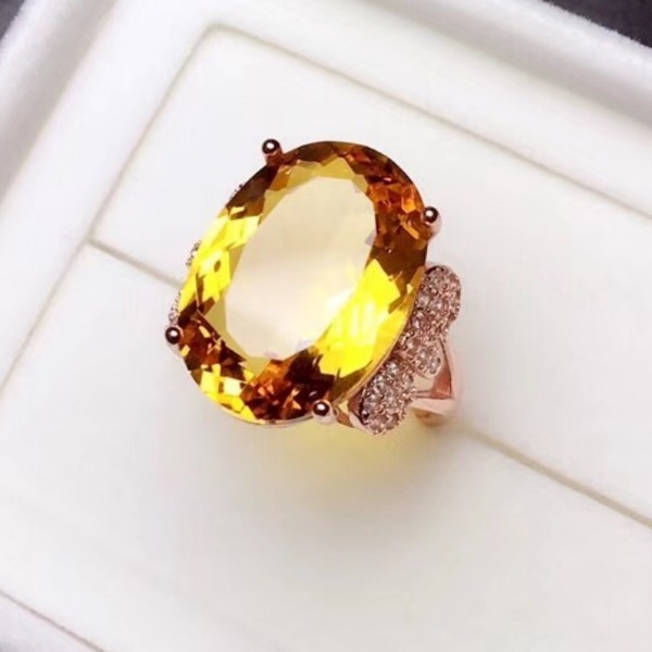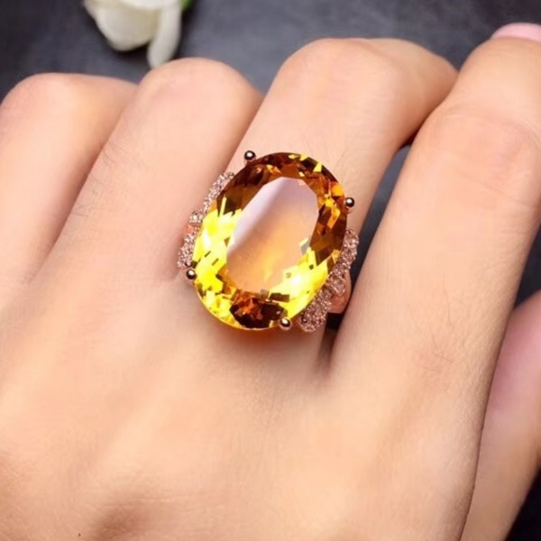 天然シトリン リング、10 カラットの宝石、 925 スターリングシルバー、女性用