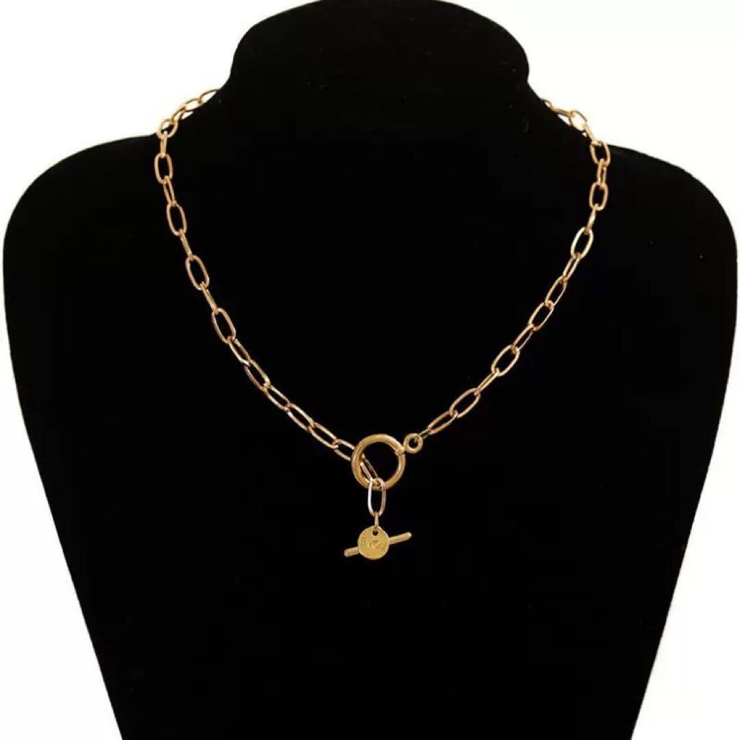 レディースネックレス、メタル製のゴールドリンクチェーンネックレスでカジュアルなスタイルに最適。