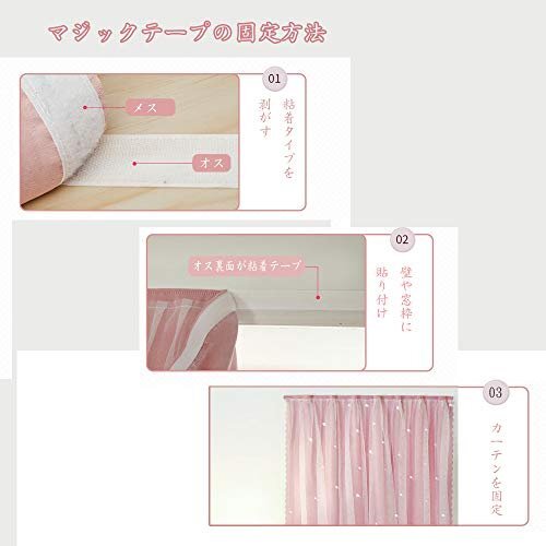 【現品限り】 マジックテープ掛け おしゃれ 透かし彫り星柄 かわいい カーテン二重 姫系遮光カーテン シェードカーテン