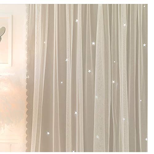 【在庫限りです】【現品限り】マジックテープ掛けおしゃれ透かし彫り星柄かわいいカーテン二重姫系遮光カーテンシェードカーテン