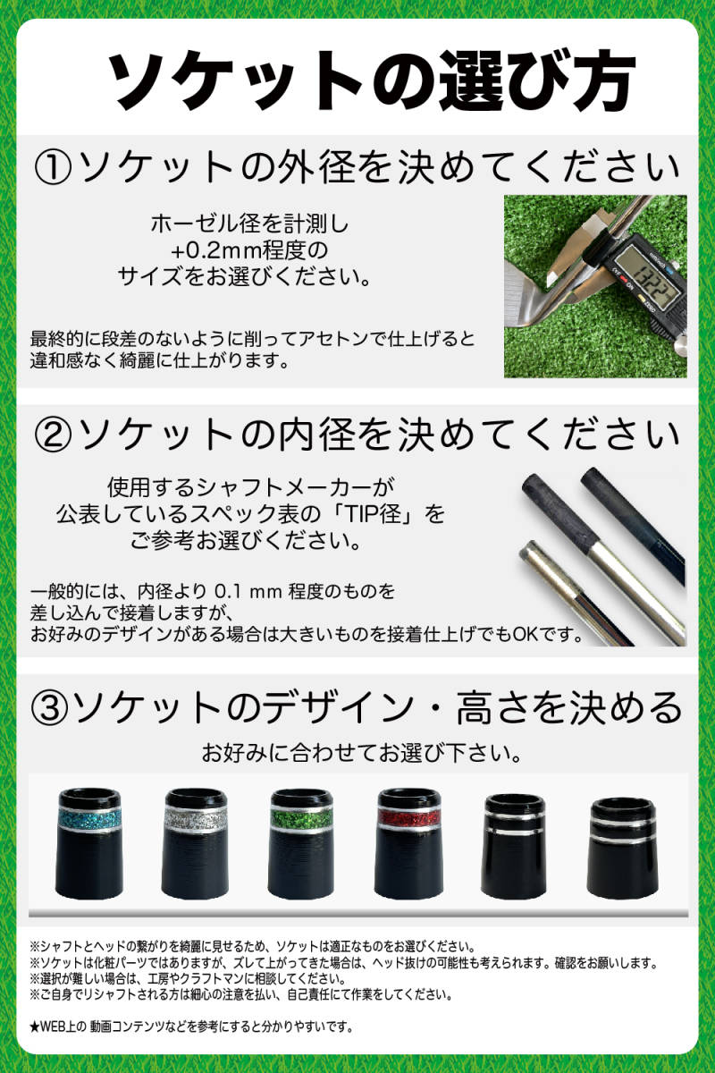 使用するシャフトメーカーが公表しているスペック表の「TIP径」をご参考にお選びください。