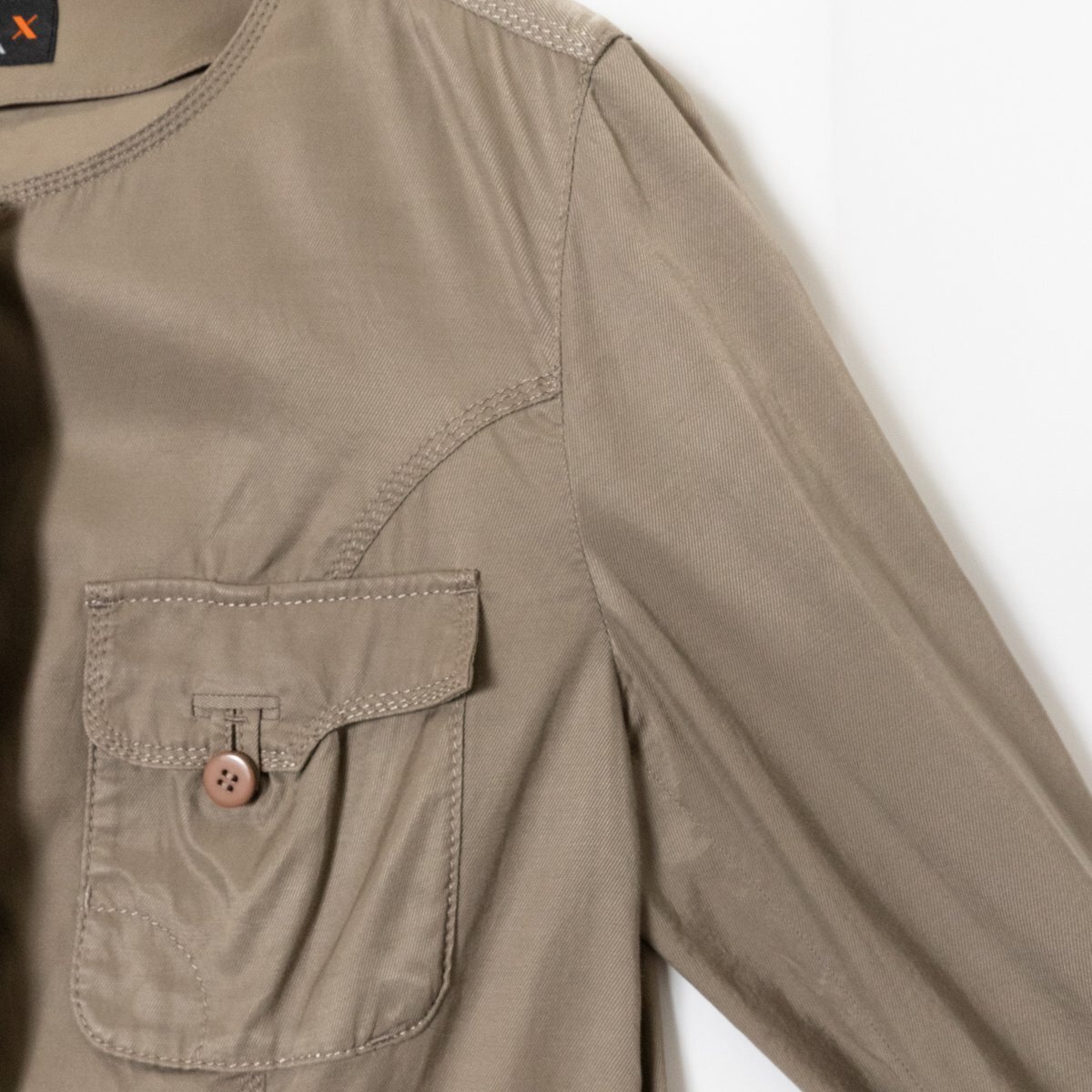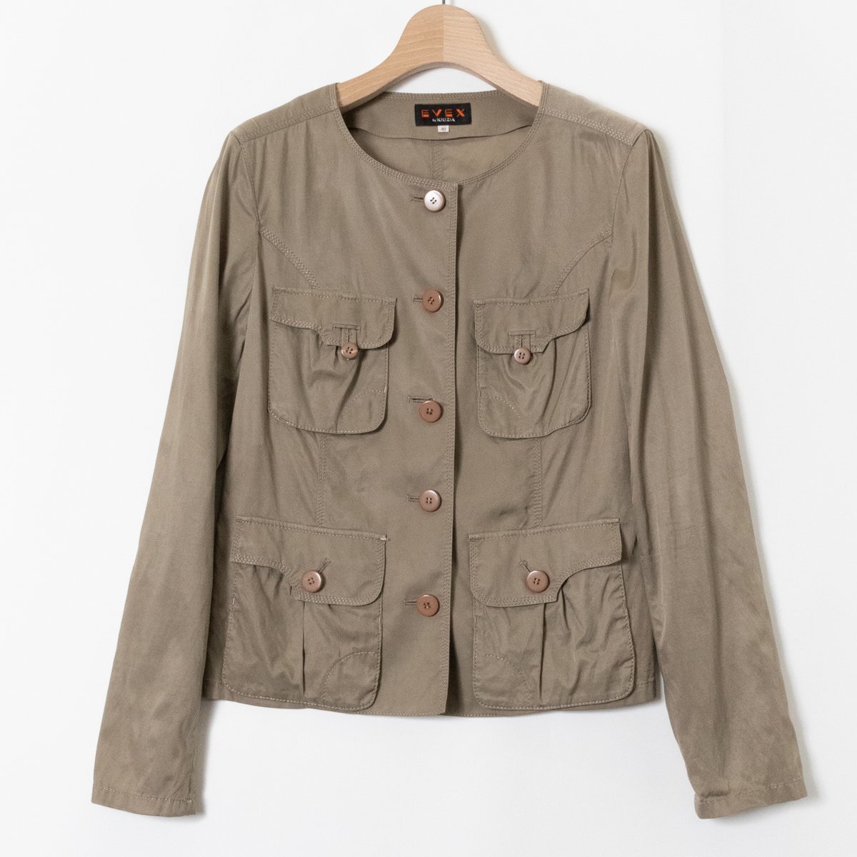 | サイズ | 表記サイズ:40 肩幅:39.5cm 身幅:45.5cm 着丈:51cm 袖丈:61cm |