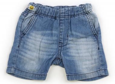 デニム調生地。ウエストは総ゴムです。ポケット裏地に毛玉感あり。色褪せ・洗いざらし感があります。