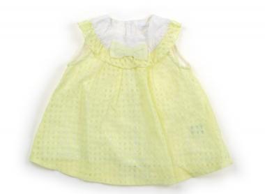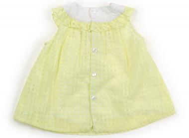 実際のサイズ表記はSです。柄部分はポリエステル100%素材。綿布帛素材の裏地付き。首元薄黄ばみや、小さな茶色いシミあり。腹部にも小さな茶色い複数ありますが、まだお使いいただけそうです。後ろボタン開閉。