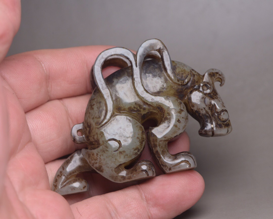| 【蔵友館蔵品・和田玉製・細密彫・玉獣・置物・賞物】・古董品・中国古玩・時代物・希少珍品・中国時代美術 |