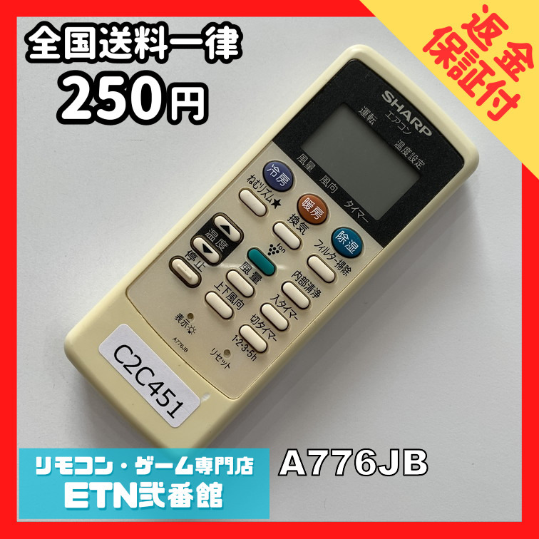 C2C451 【送料250円】エアコン リモコン / SHARP シャープ A776JB 冷房 暖房 動作確認済み★即発送★