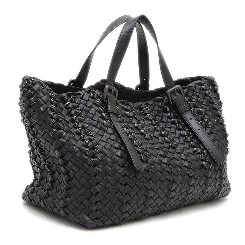 | 商品特徴 | ブランドを象徴するイントレチャートレザーを、ワイヤーリングで編み込んだようなユニークなデザインが特徴的なトートバッグです。上質なブラックレザーがシックな印象を与え、大きく開く広めの間口と、取り外し可能なポーチが付属しているため収納力も抜群。日常使いからビジネスシーンまで幅広く活躍する、機能性と洗練されたデザインを兼ね備えた逸品です。 |