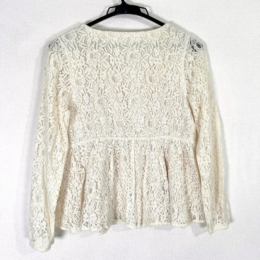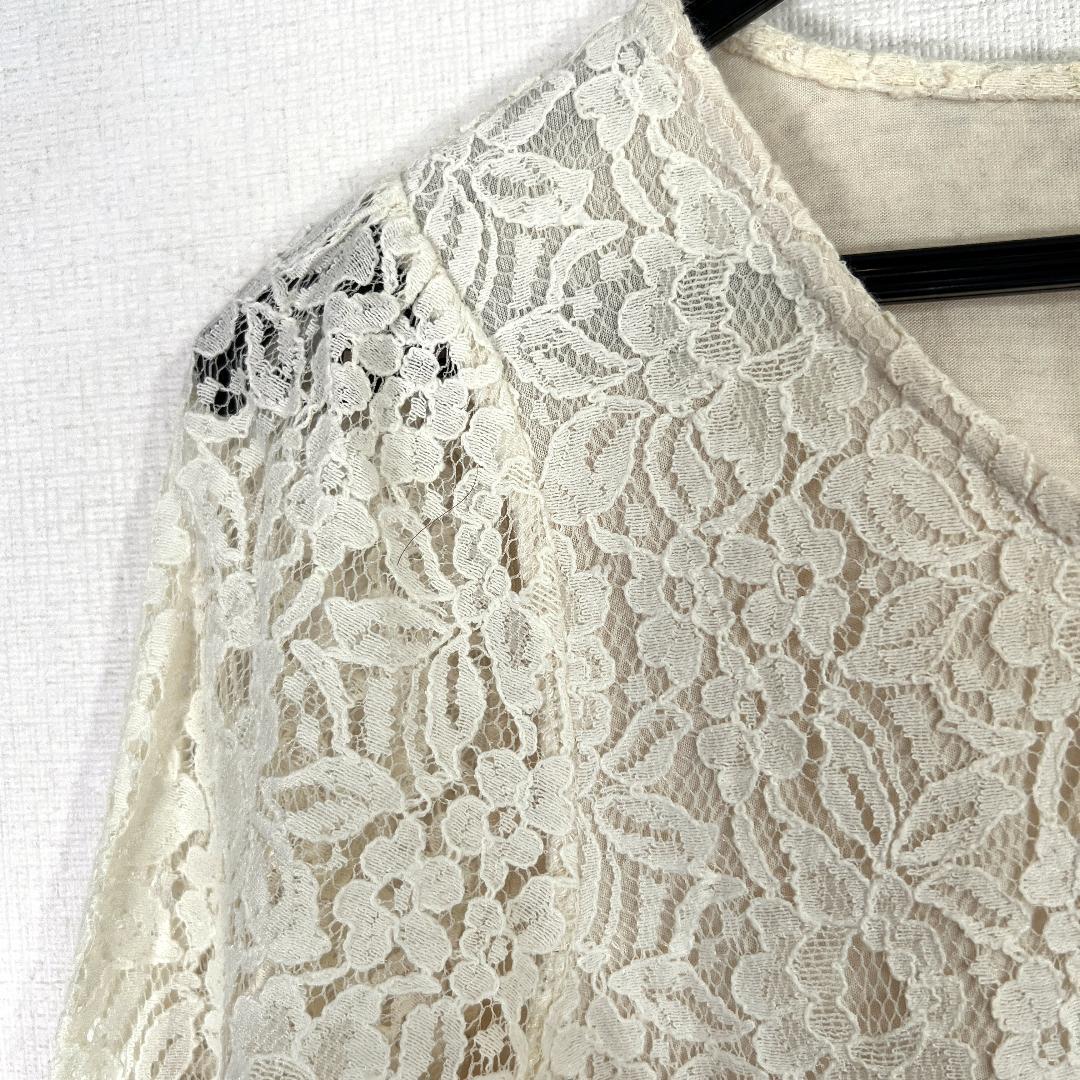 【ローリーズファーム】LOWRYS FARM オフホワイト系 アイボリー系 レースチュニック カットソー トップス レディース Mサイズ【a002】